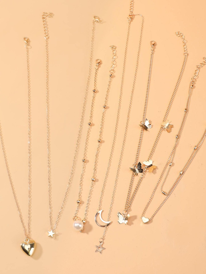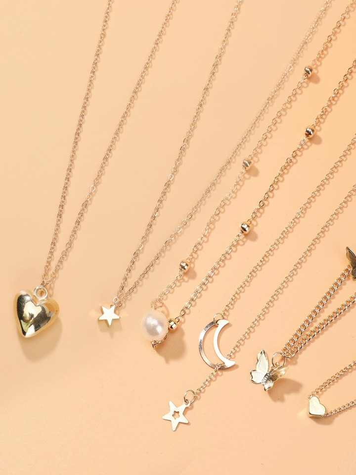 Collar de cadena colgante de metal 6 piezas