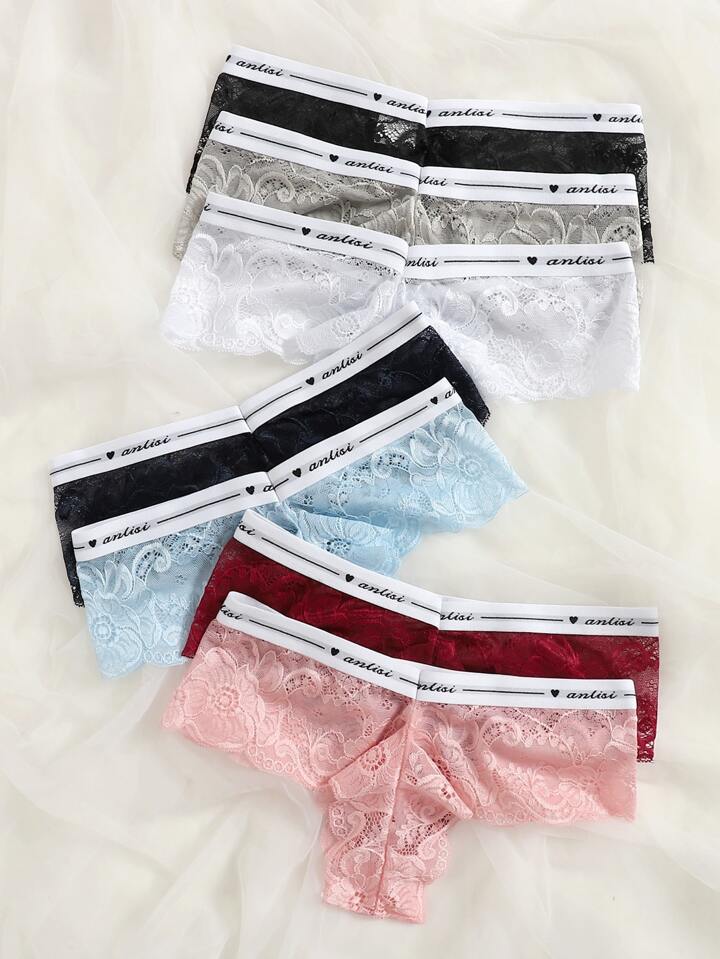 7 piezas set bragas con cinta con letra con encaje floral