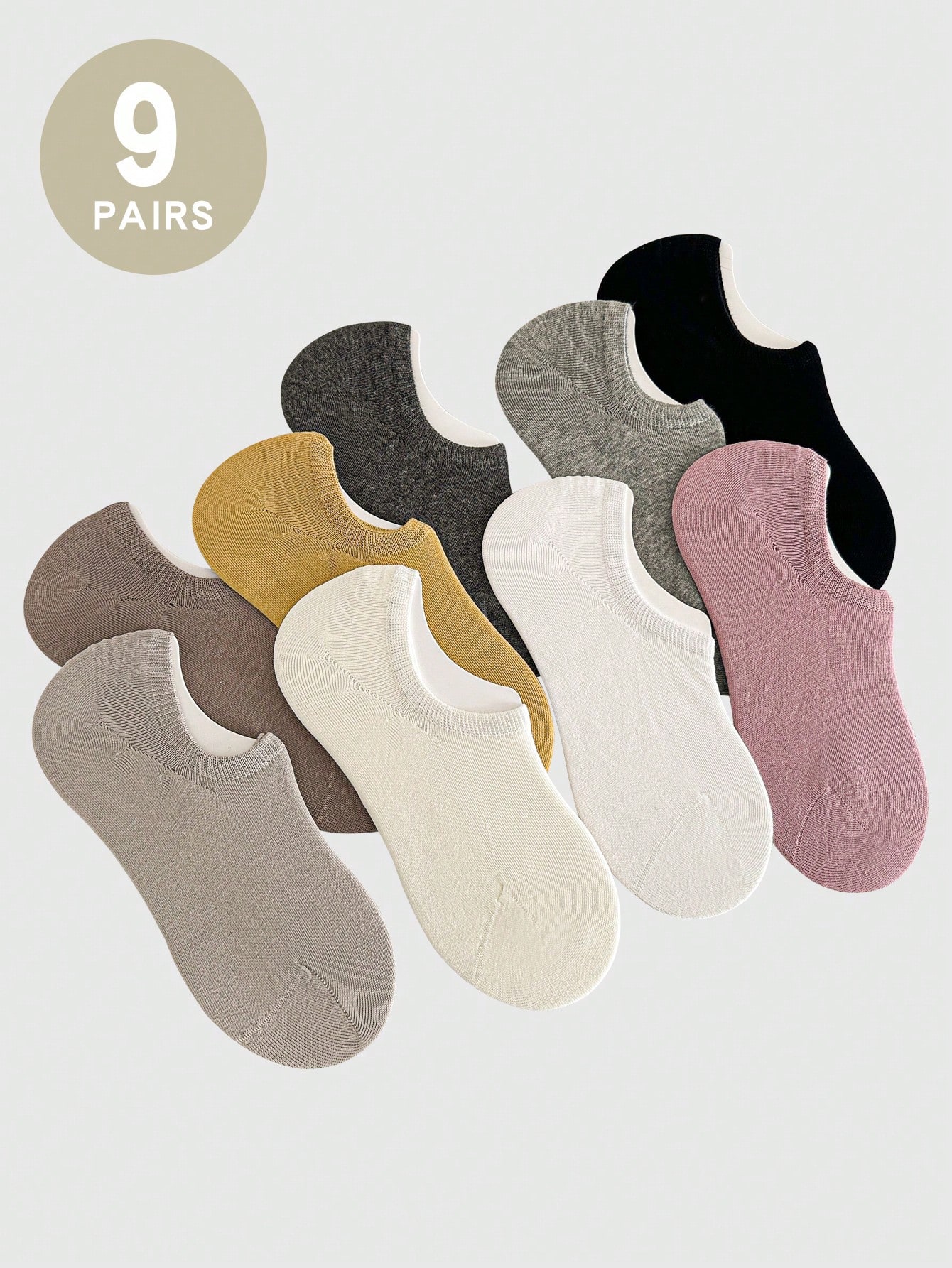 9 pares de calcetines invisibles de unicolor para mujeres, calcetines cortos versátiles y de moda para primavera/verano, estilo universitario