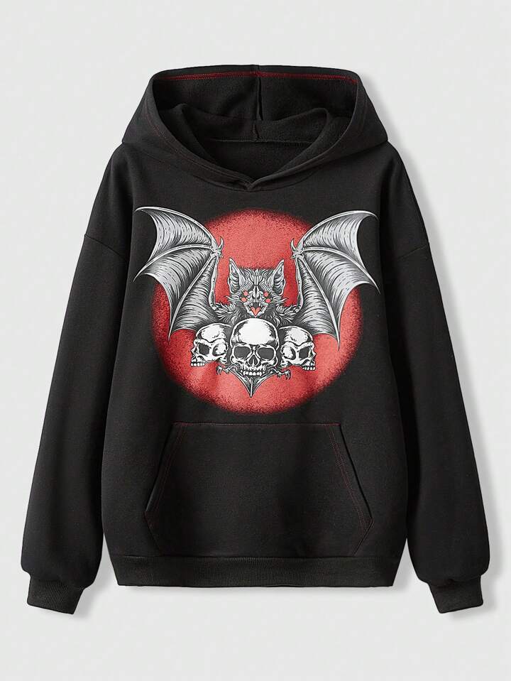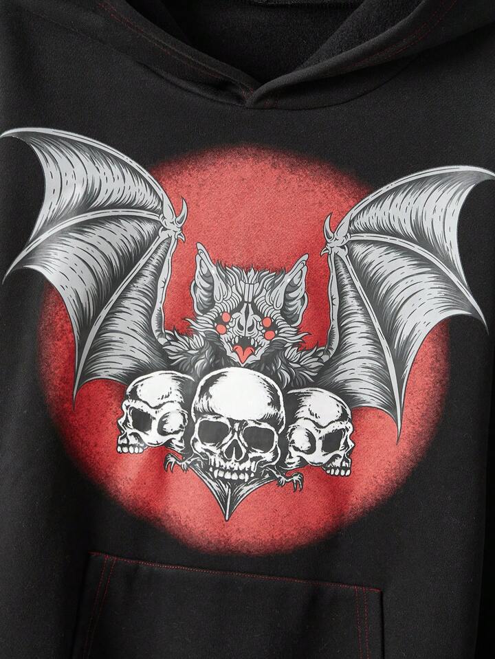 Aan Widyanto Capucha térmica de cráneo & con estampado de murciélago con bolsillo de canguro de hombros caídos