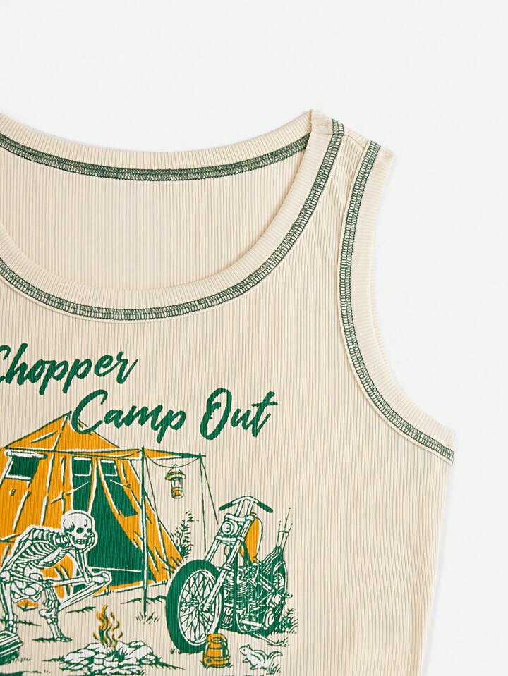 Aan Widyanto Top tank ribete con puntada con letra con estampado de dibujos animados