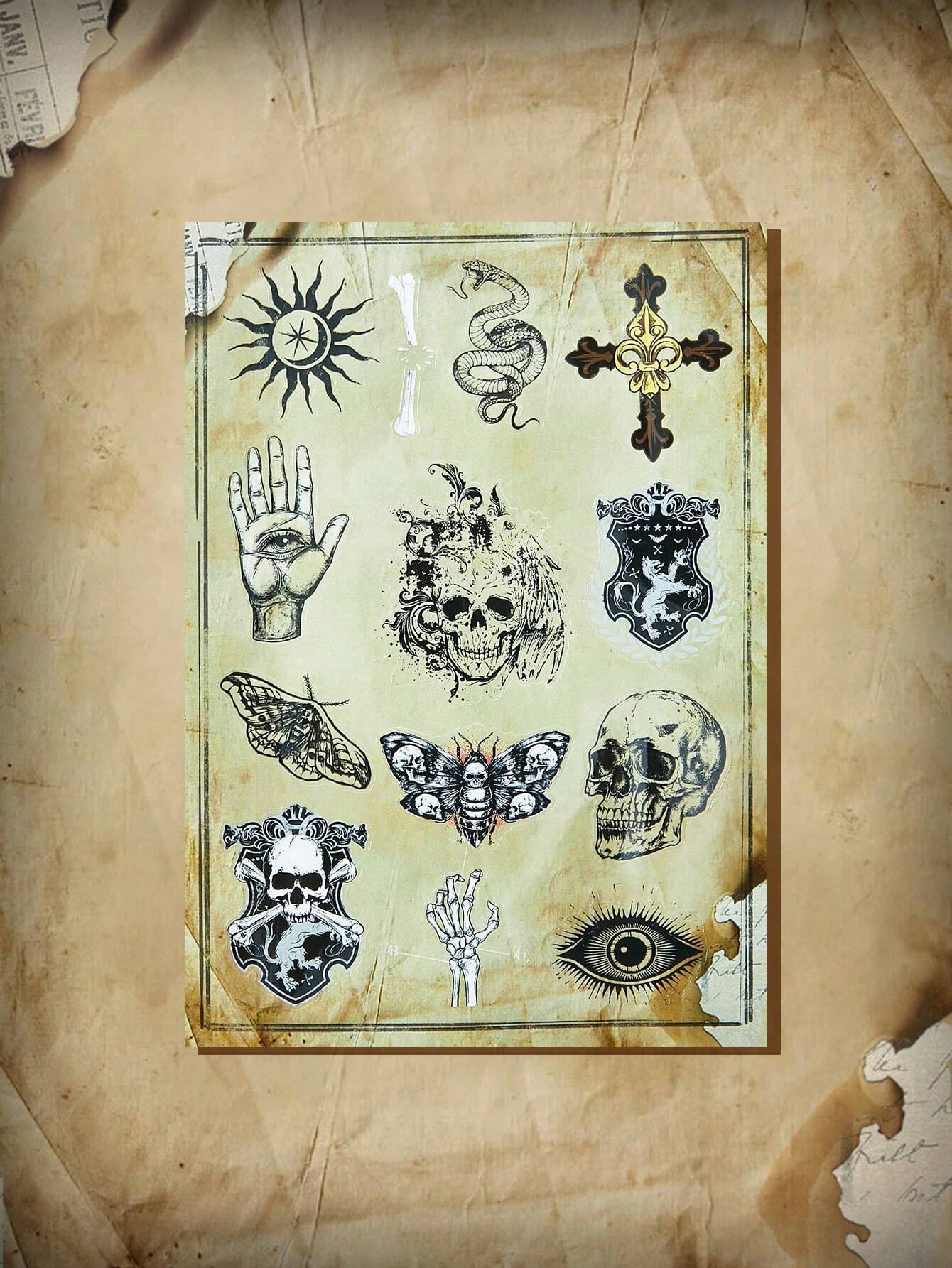 Academia 1 pieza de cráneo & patrón cruzado Pegatina , oscuro Etiqueta engomada surtida