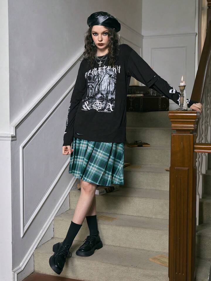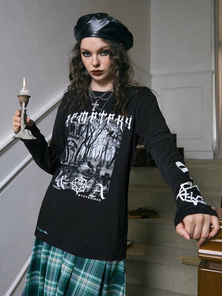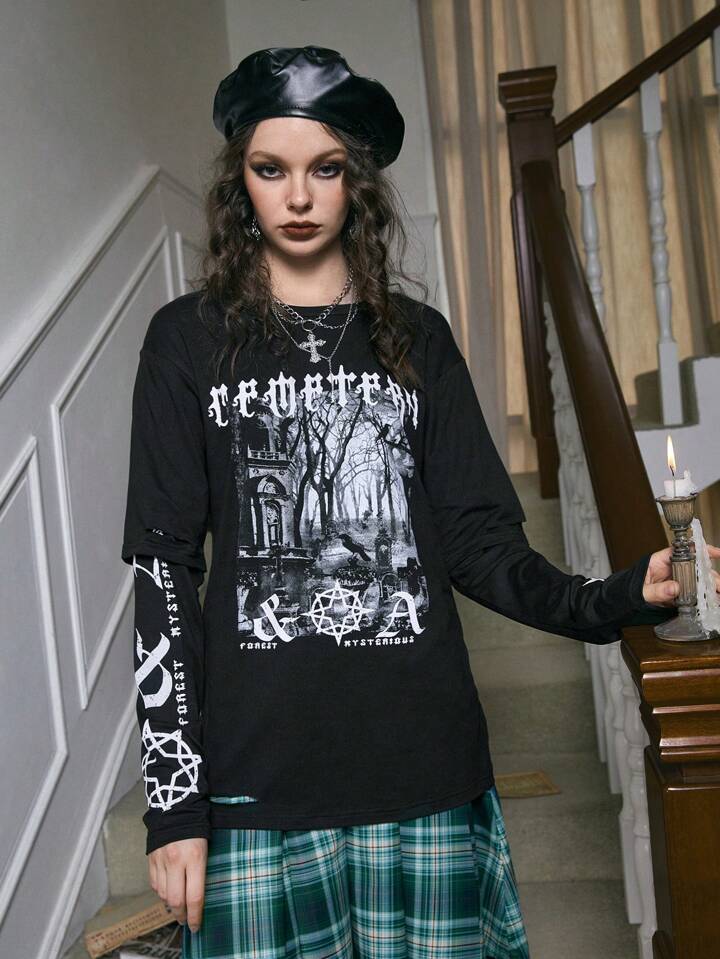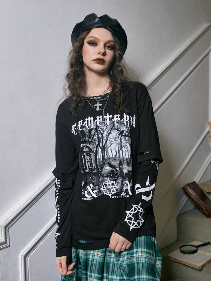 Academia Camiseta desgarro 2 en 1 con estampado de letra