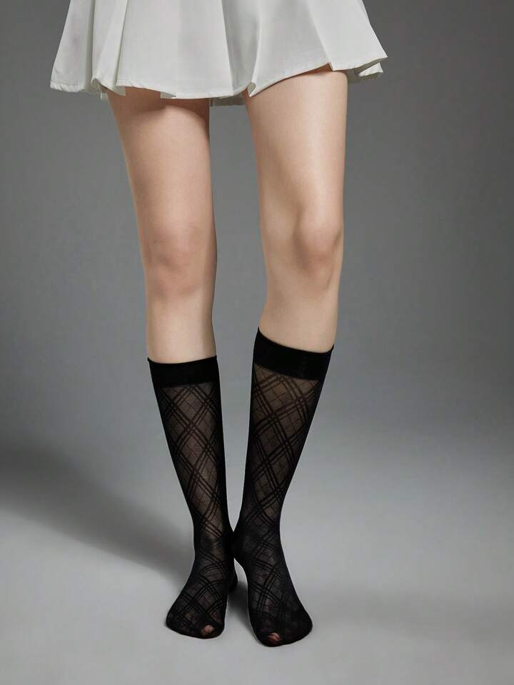 Academia Mujer 2 piezas Calcetines altos con patrón de cuadros moda