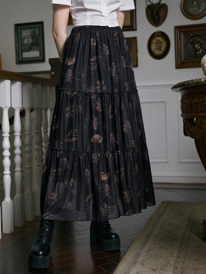 Academia Falda de malla con volantes en el bajo, estampado total, para la escuela