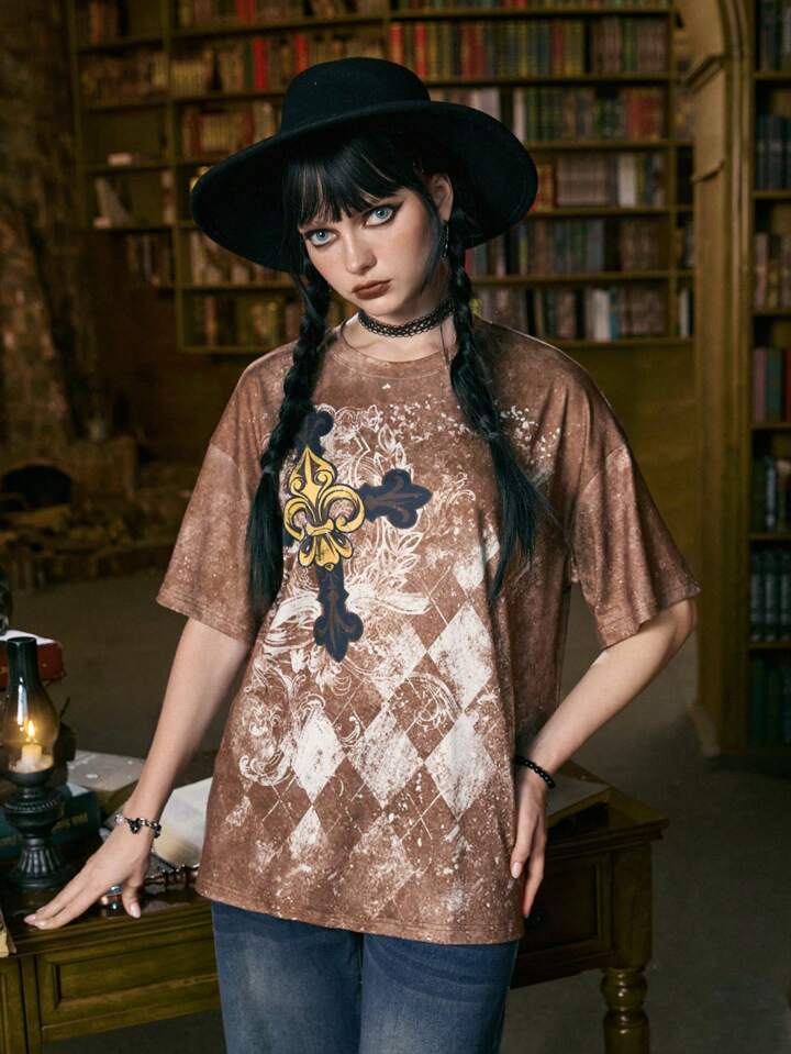 Academia Camiseta con rombo cruzado con estampado de tie dye