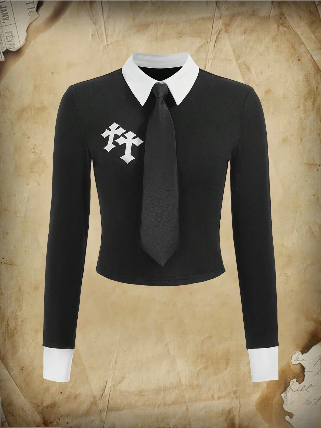Academia Camiseta crop cruzado con estampado de cuello en contraste