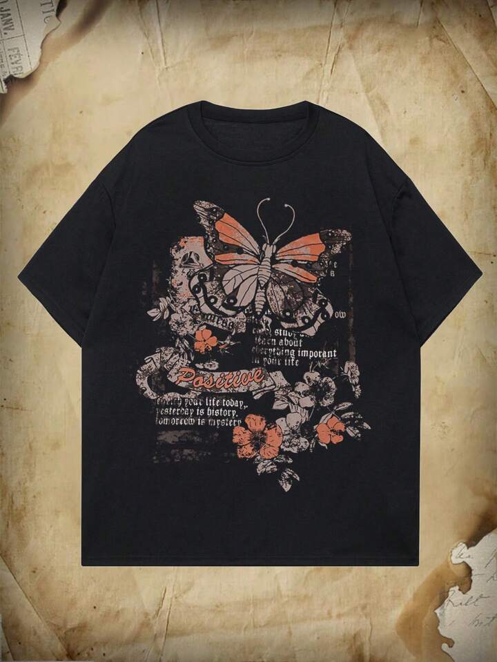 Academia Hombres Camiseta con estampado de mariposa y slogan