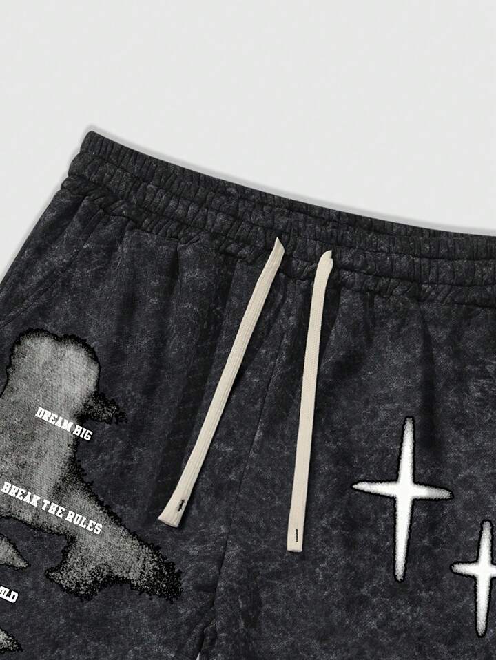 Academia Pantalones cortos casuales con cordón en la cintura y estampado de letras para hombres, escuela