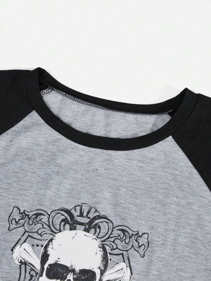 Academia con estampado de cráneo de manga raglán Camiseta & de cuadros Shorts Conjunto de pijama