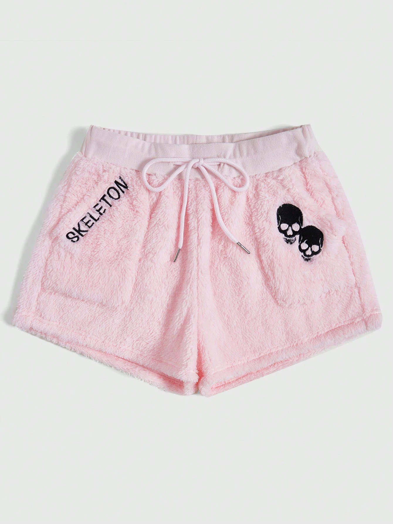 Academia Pantalones Cortos De Felpa Con Patrón De Calavera