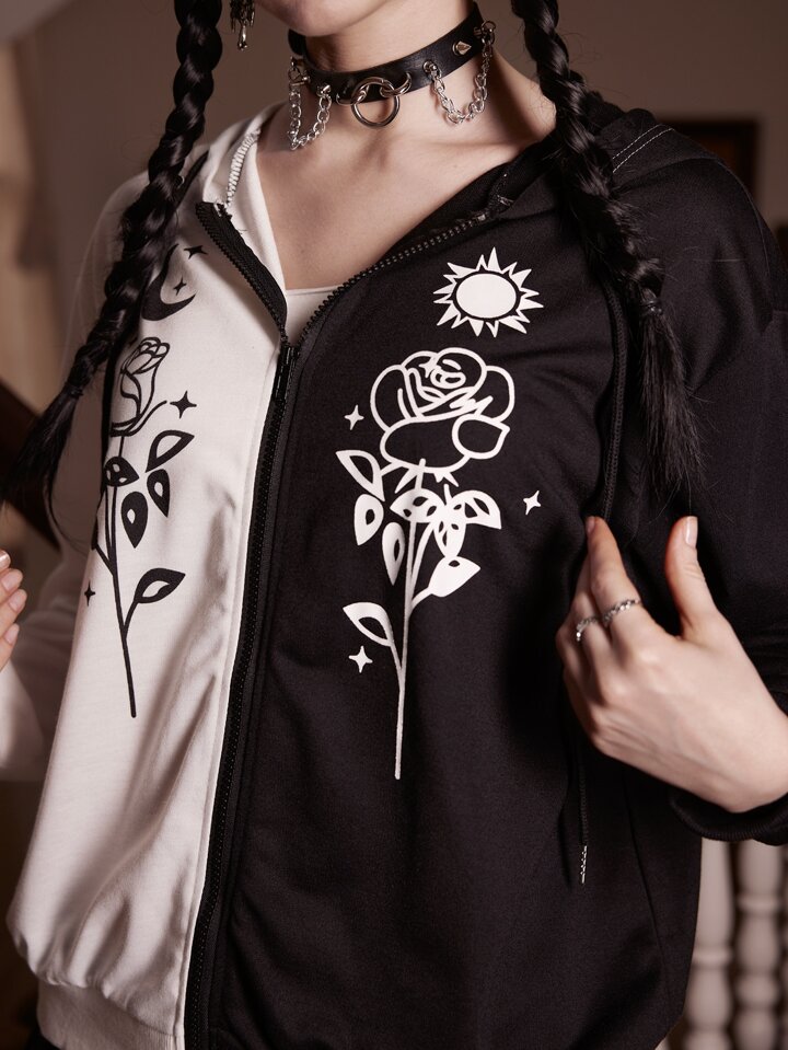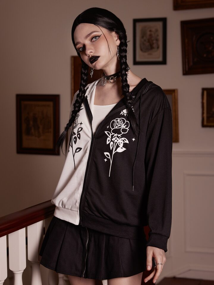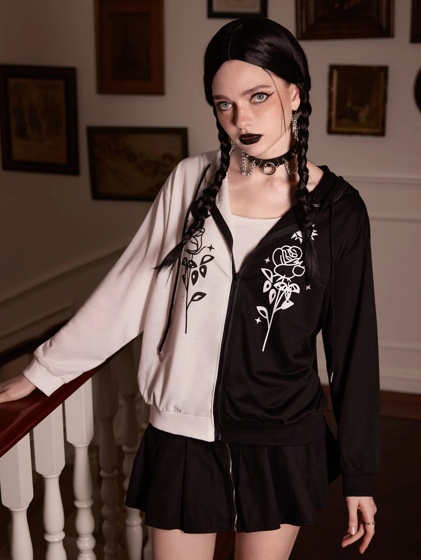 Academia Capucha con cremallera de dos tonos con estampado floral