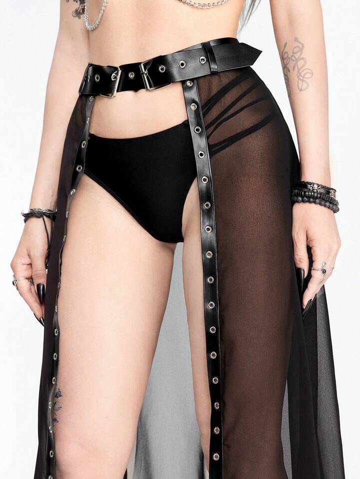Goth Cinturón gótico ajustable a la cintura con cinta tejida con ojales partidos, falda transparente y cubierta de falda con capa exterior