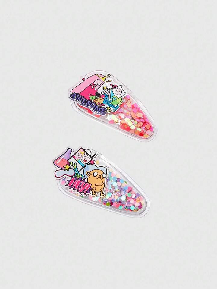 Adventure Time X ROMWE 2 piezas Pinzas para el pelo con gráficos de letras de dibujos animados brillantes