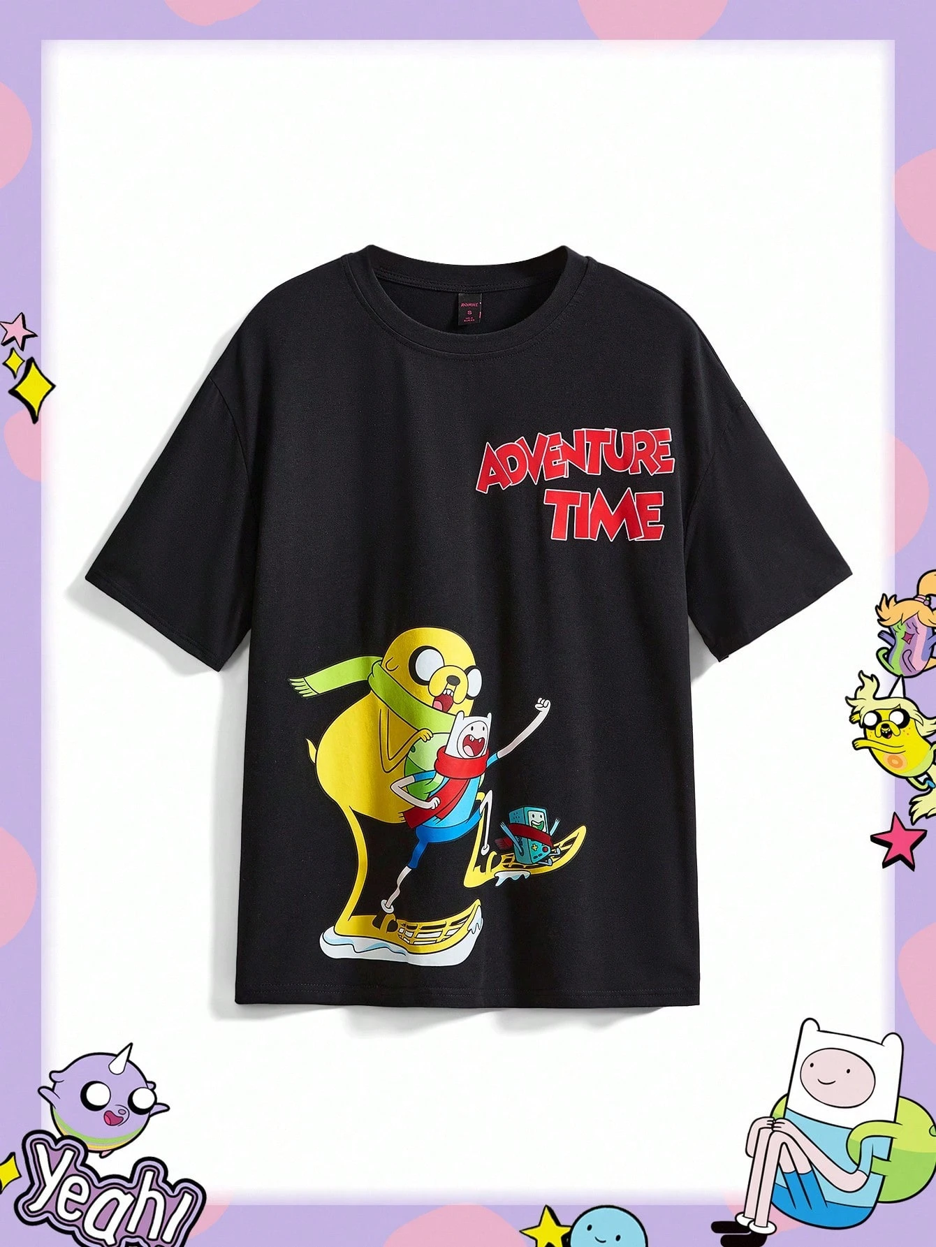 Adventure Time X ROMWE Camiseta holgada de mujer con estampado de dibujos animados linda
