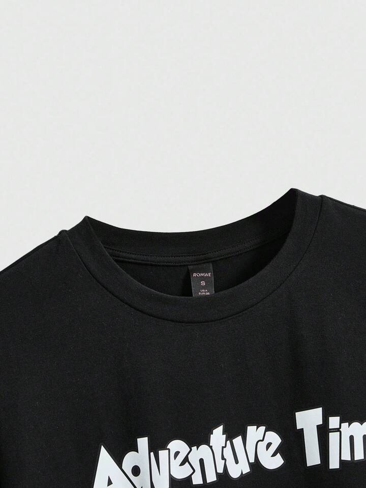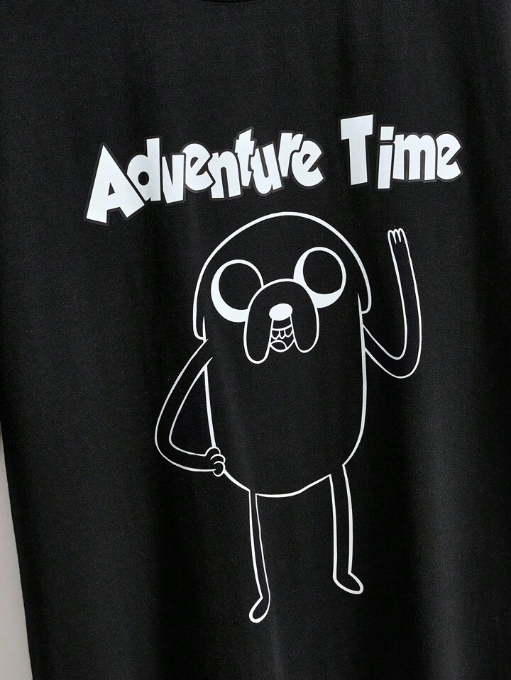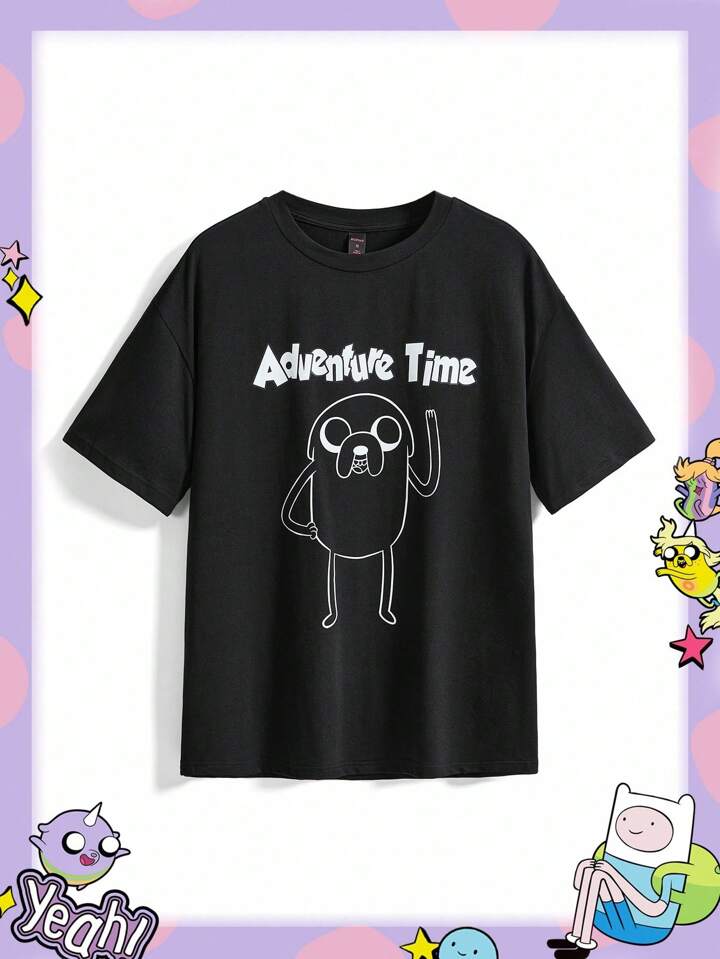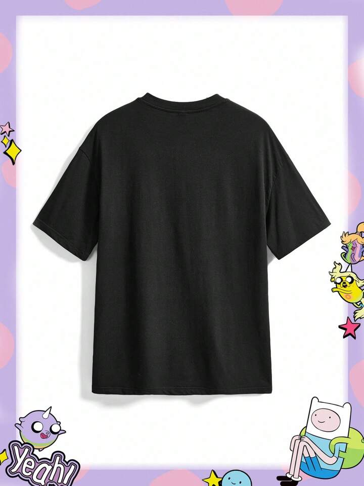 Adventure Time X ROMWE Camiseta negra holgada con gráfico de dibujos animados lindos para mujeres