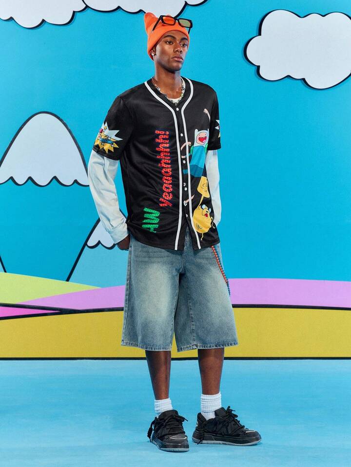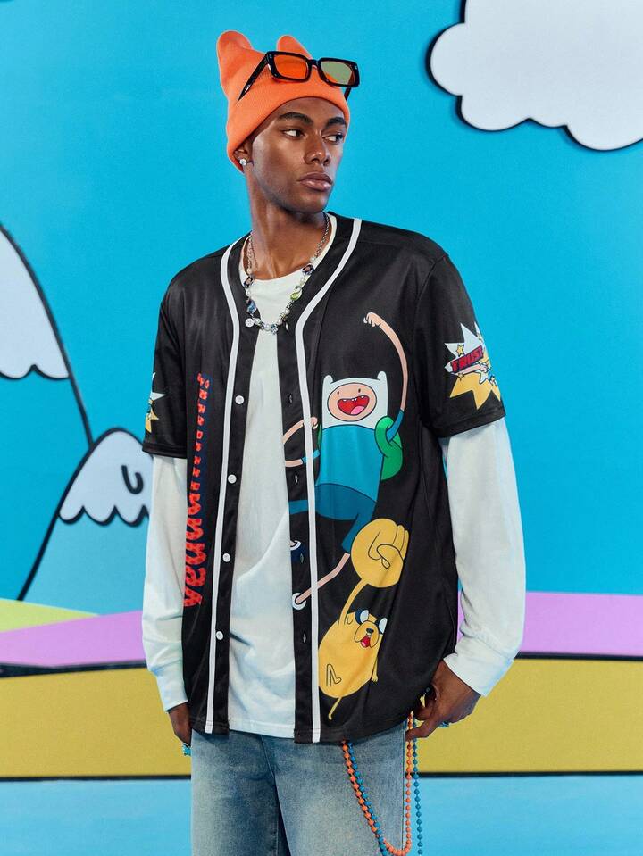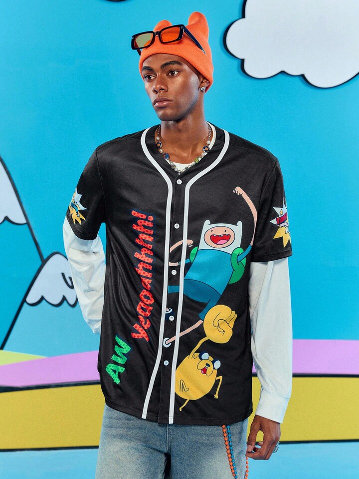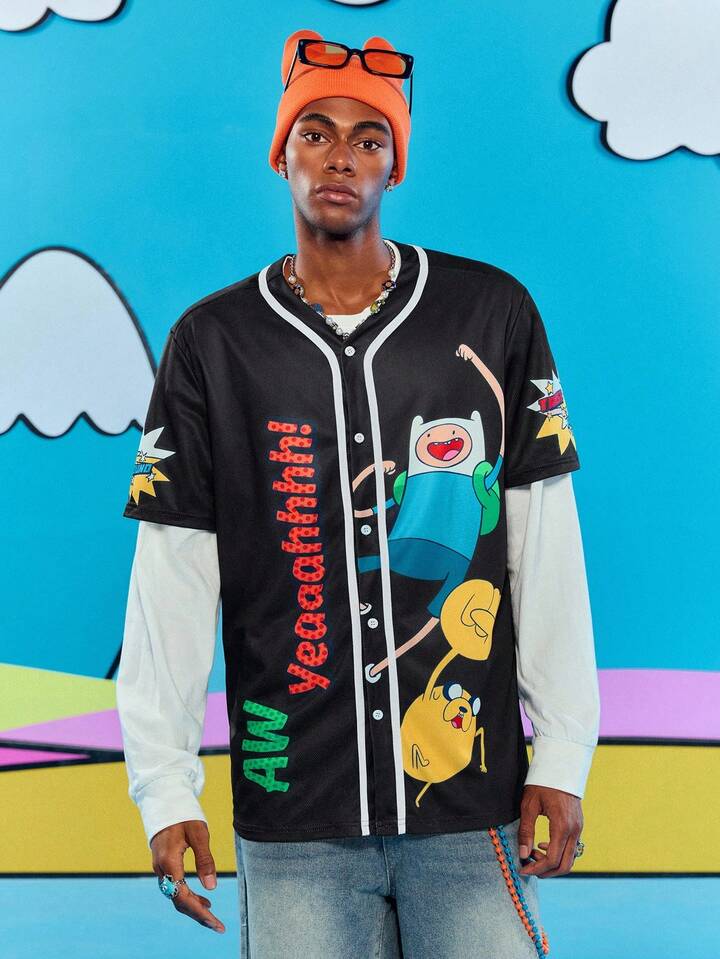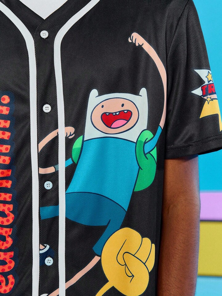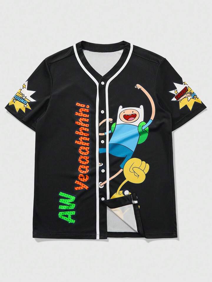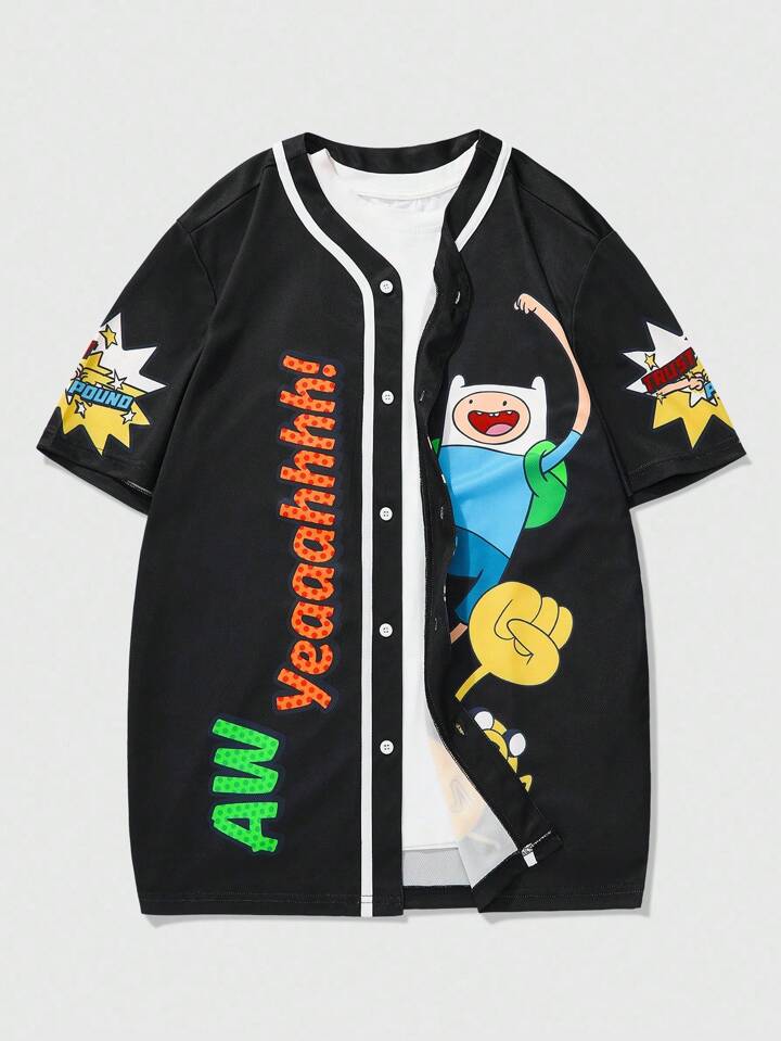 Adventure Time X ROMWE Camisa de manga corta con botones delanteros con gráfico de letra y dibujos animados
