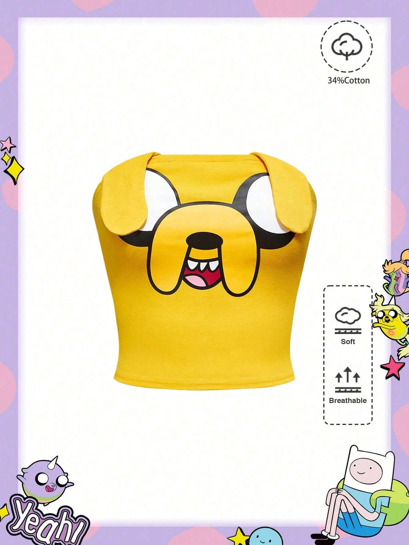 Adventure Time X ROMWE Top tubo casual y lindo con gráfico de dibujos animados 3D oreja amarilla para mujer en verano