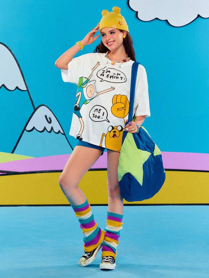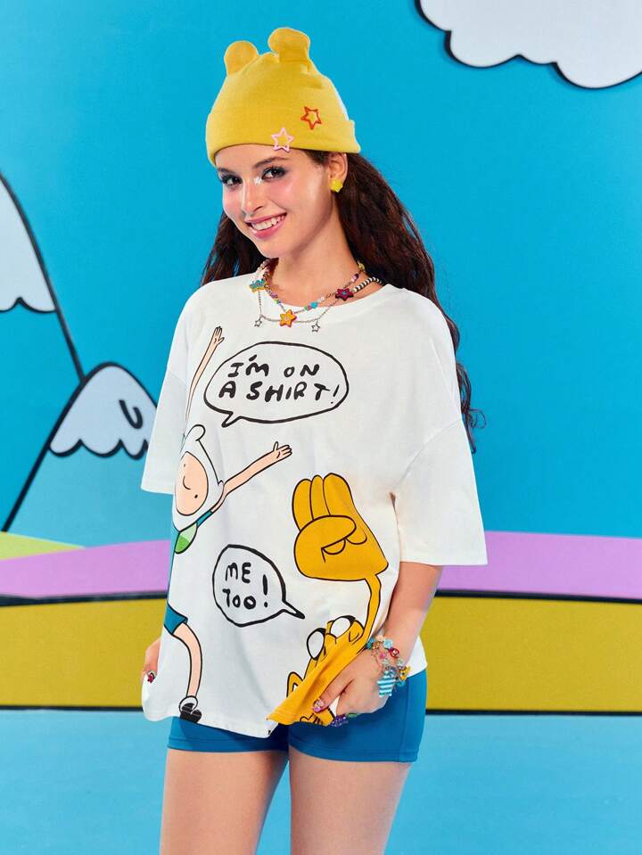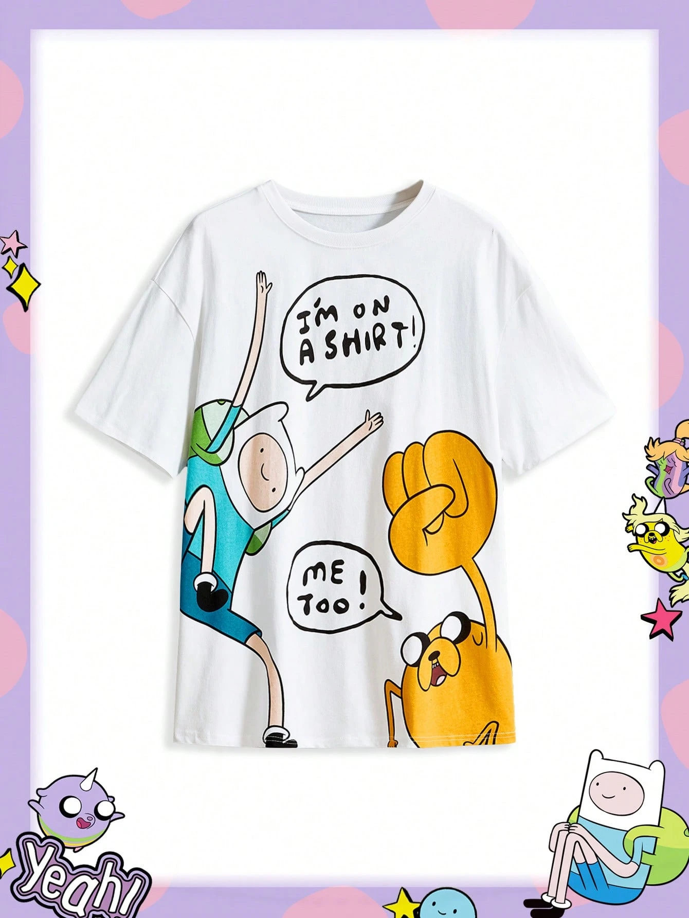 Adventure Time X ROMWE Camiseta 100% algodón con gráfico de dibujos animados lindos para mujer