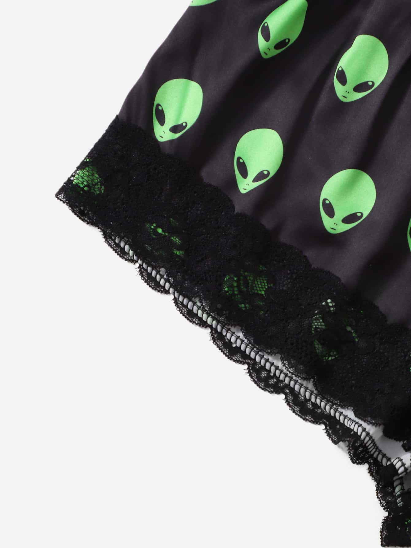 Conjunto de pijama con estampado de extraterrestre con encaje en contraste