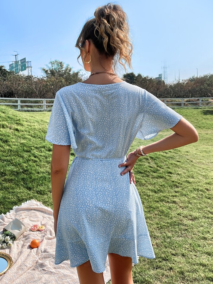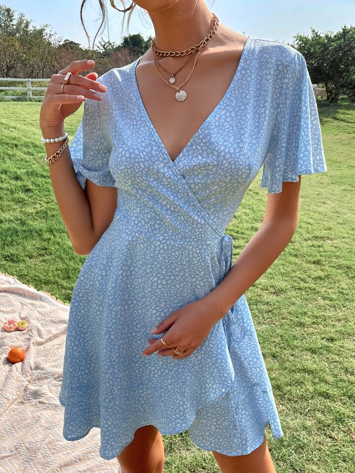 Vestido cruzado con estampado ribete con fruncido con cordón lateral