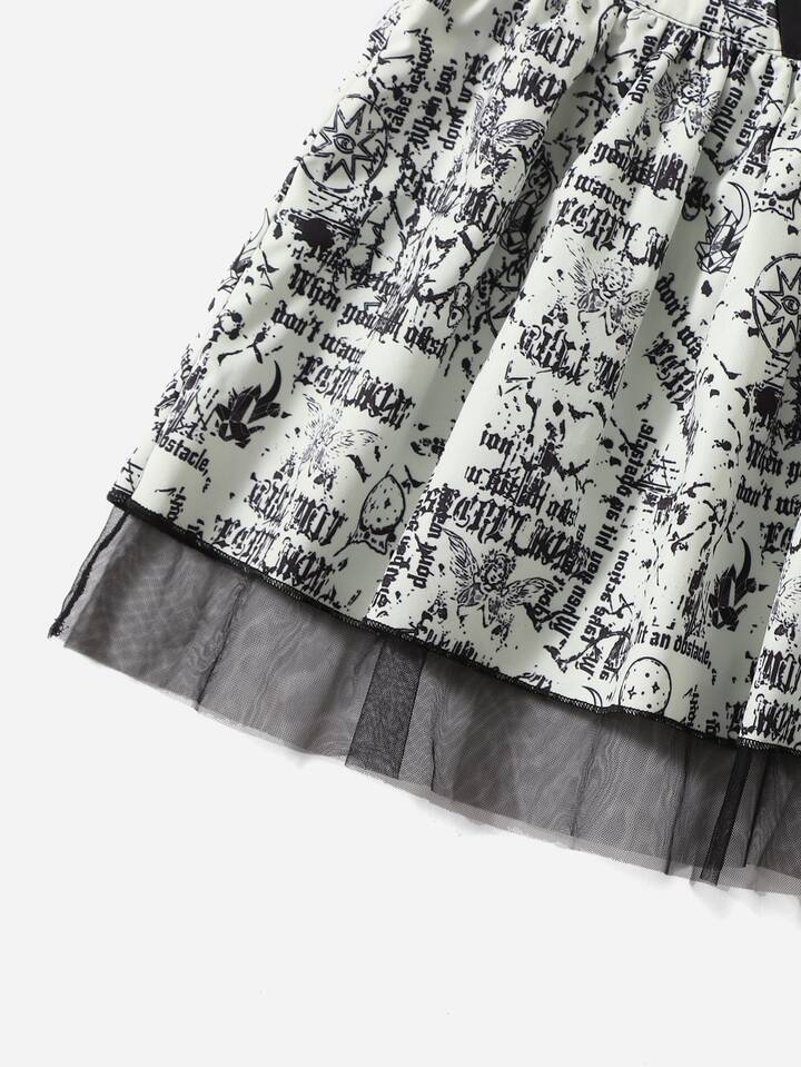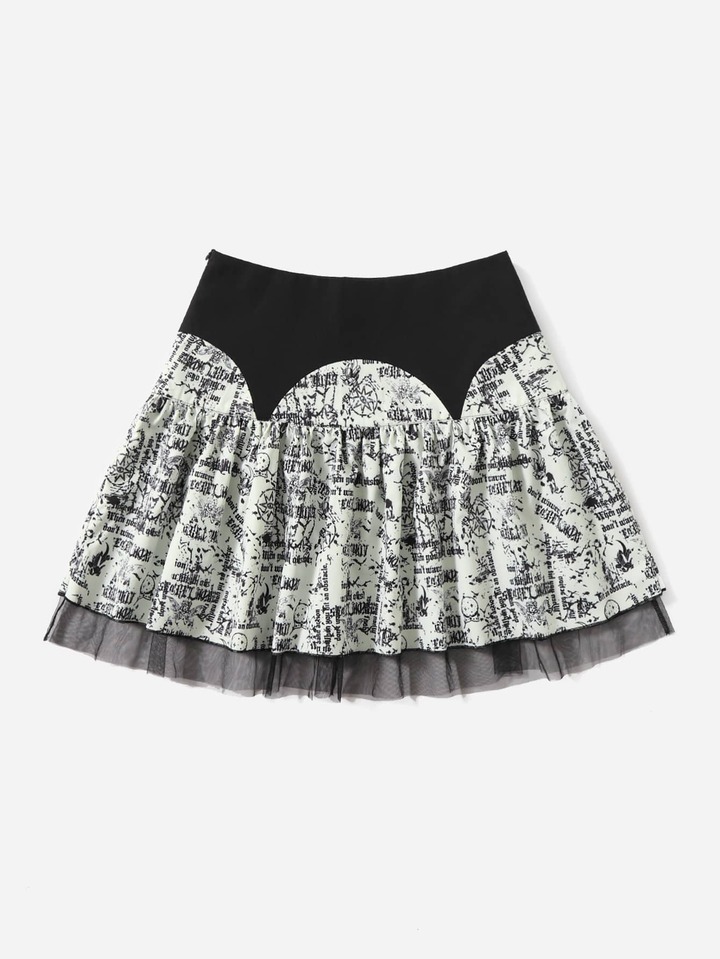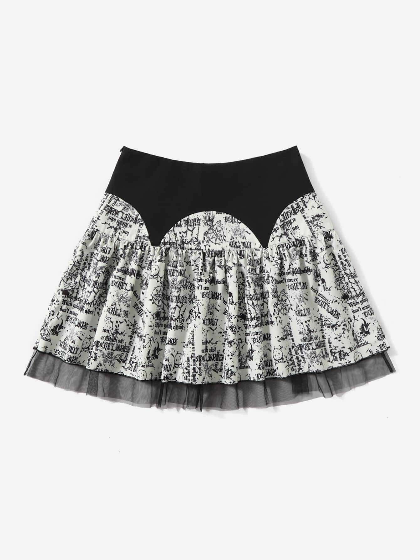 Falda con estampado de malla en contraste