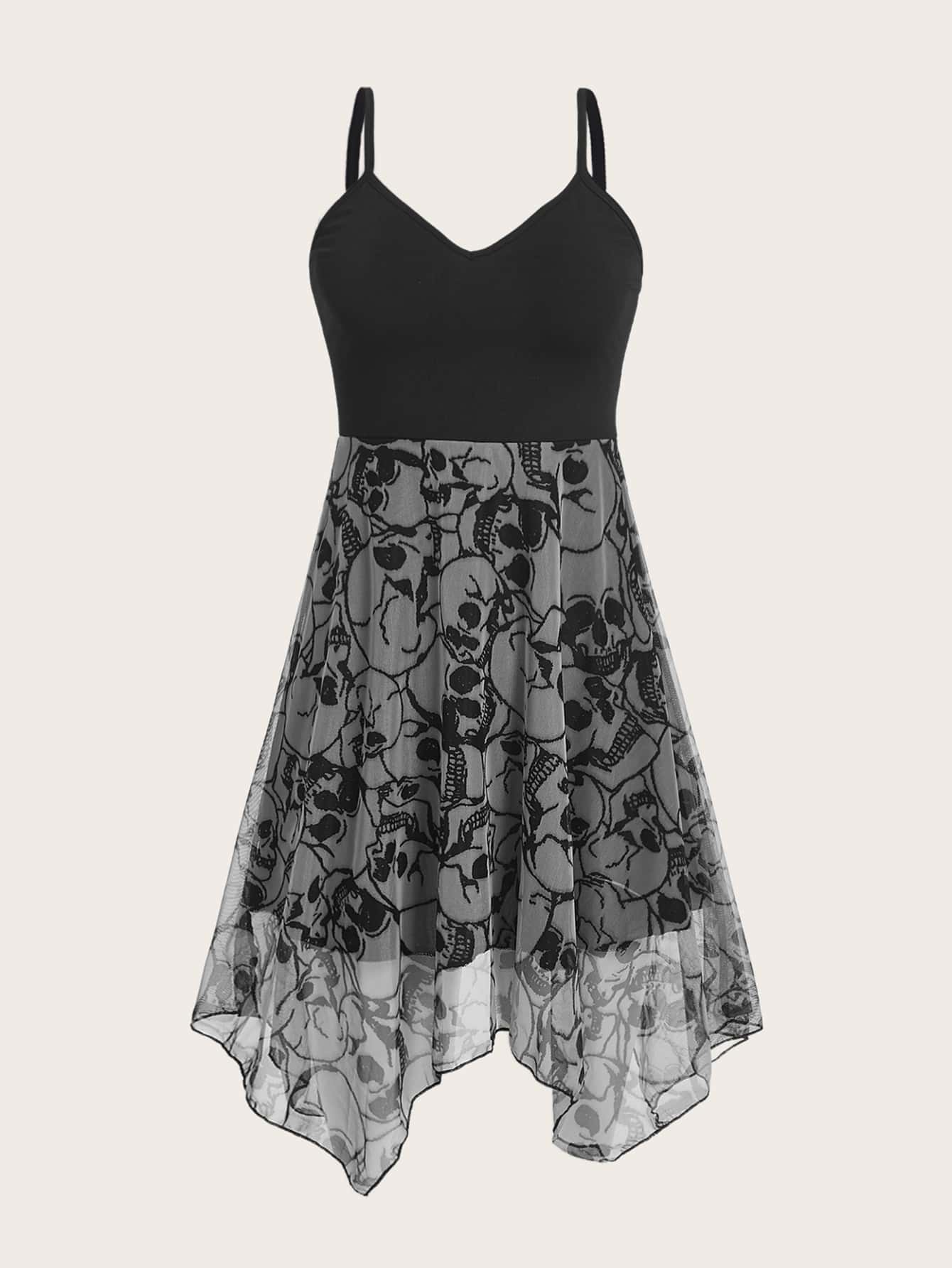 Vestido de tirantes estampado de cráneo