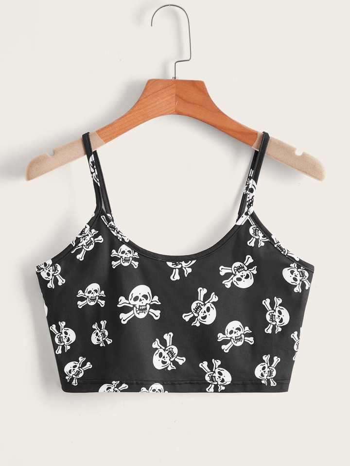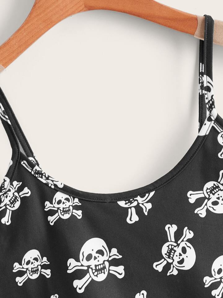 Top de tirantes estampado de cráneo