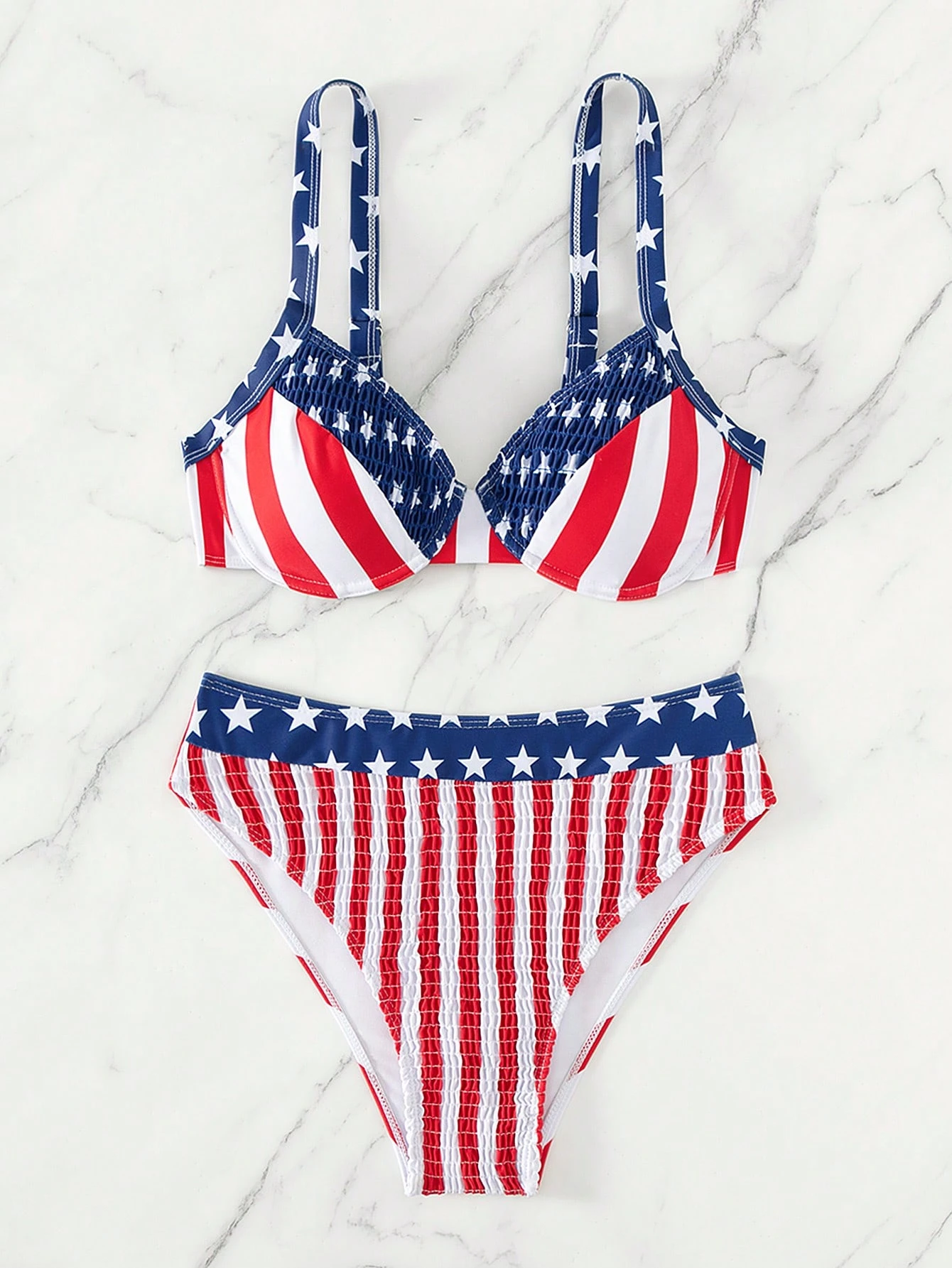Bikini de Americana con estampado de bandera de EE. UU. con sujetador con aros y braga para el 4 de julio, conjunto de bikini de verano para la playa