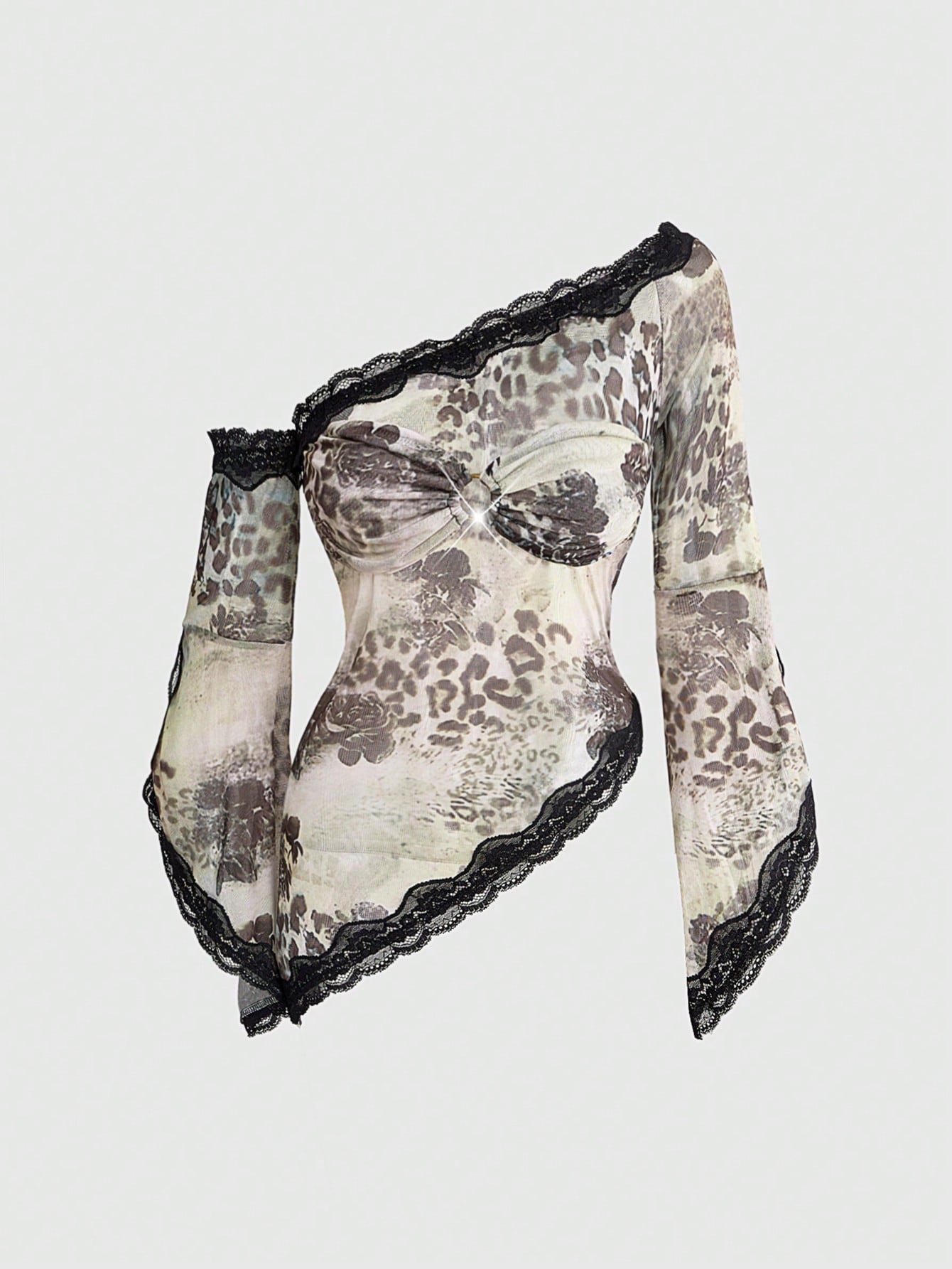 Blusa holgada con estampado animal, teñido anudado, degradado, estilo hippie, música de festival vintage y encaje hombros descubiertos para mujeres