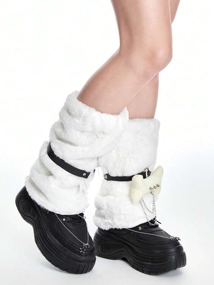 Anime 1 par de calentadores de piernas sólidos y lindos, cubiertas de piernas sólidas para mujeres, calentadores de piernas con estilo japonés Y2K personalizado con decoración de estrella ósea, accesorios que deben instalarse por sí mismos