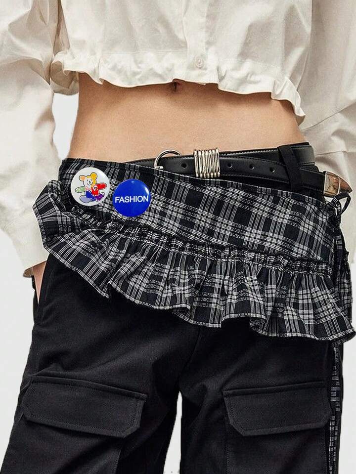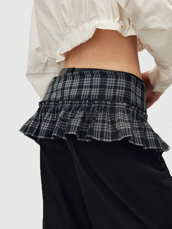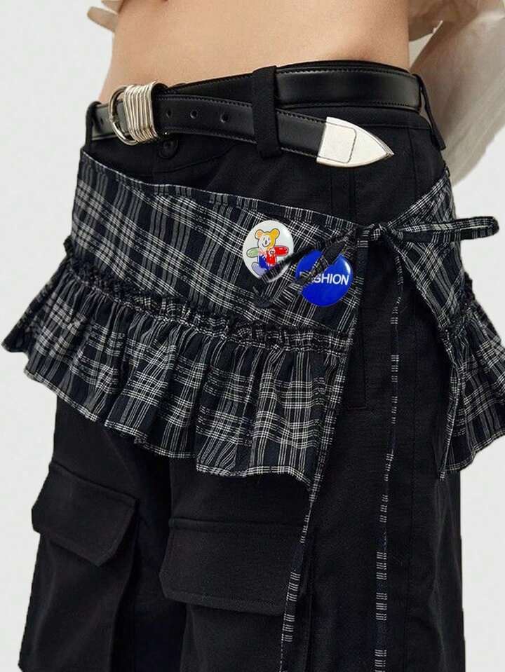 Anime 1 pieza Vestido envolvente con volantes a cuadros Y2K, falda con cintura con volantes, con cinturón ajustable y parche