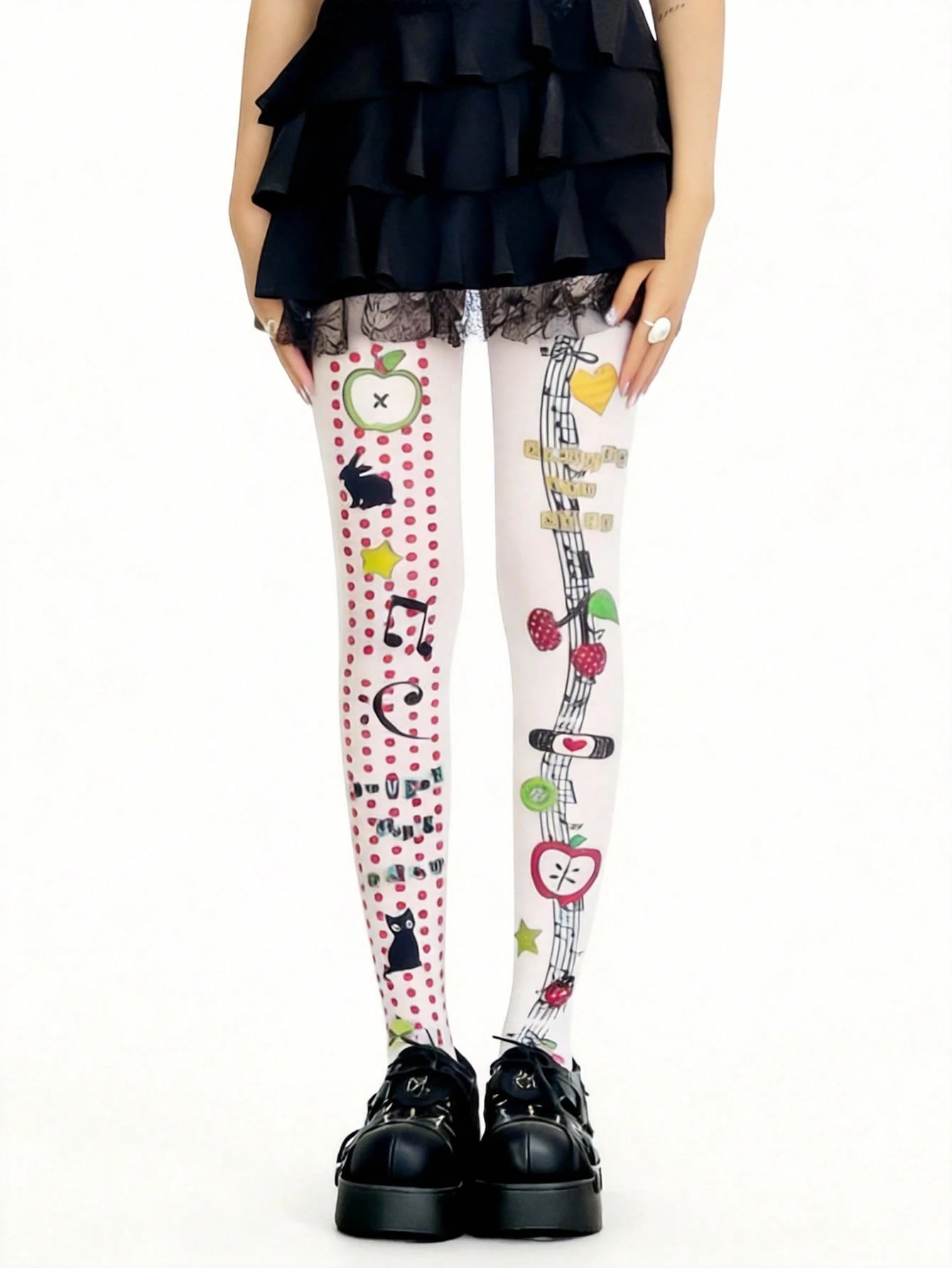 Anime 1 par de medias/pantimedia con estampado de símbolo musical, manzana y gato de Shuangchao, de diseño fresco y dulce para mujer