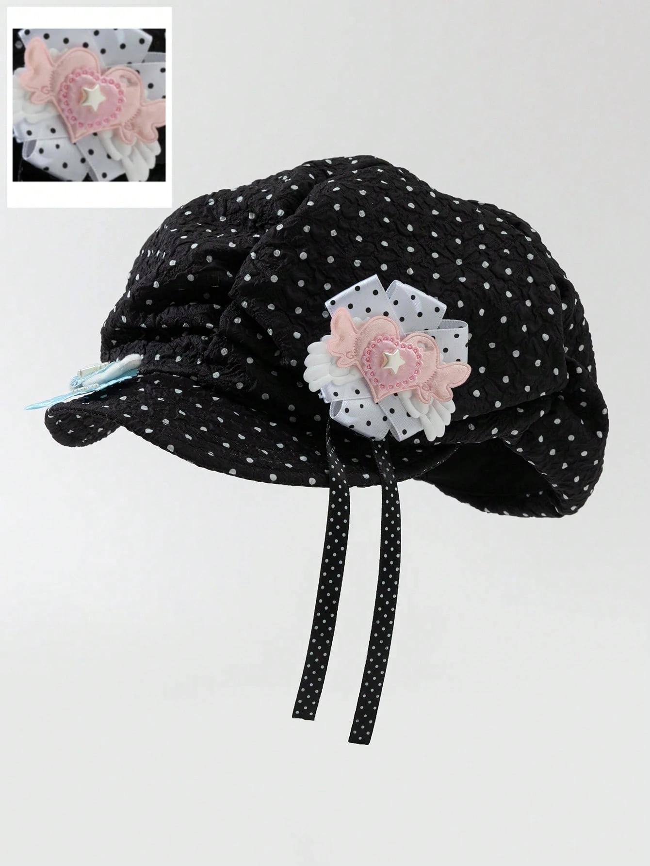 Anime 1 Gorra de periódico de mujer con diseño de alas de ángel, flor de amor y lunares
