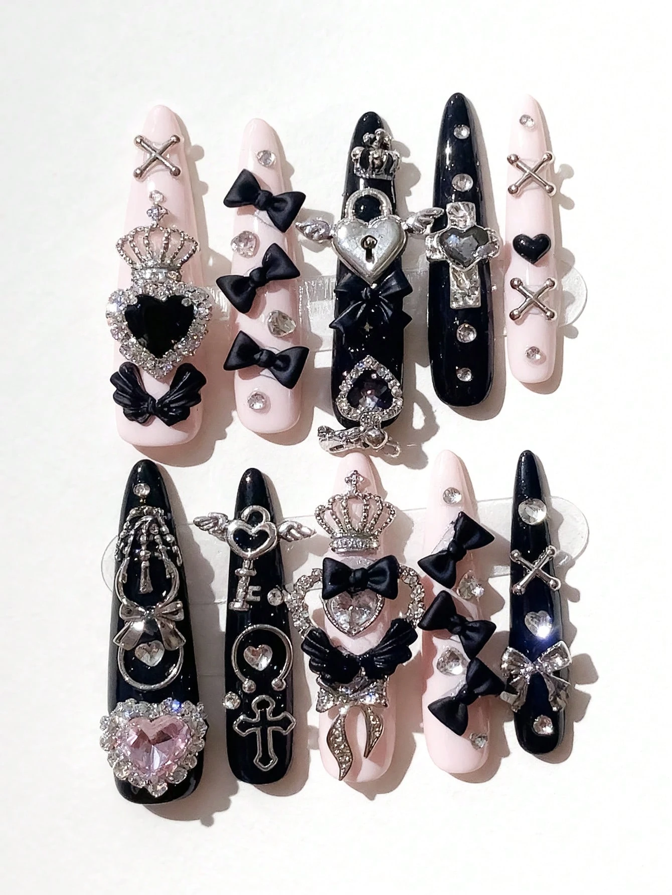 10 piezas de pegatinas de arte de uñas con corazones, estrellas, lazos y alas estilo Y2K con cinta