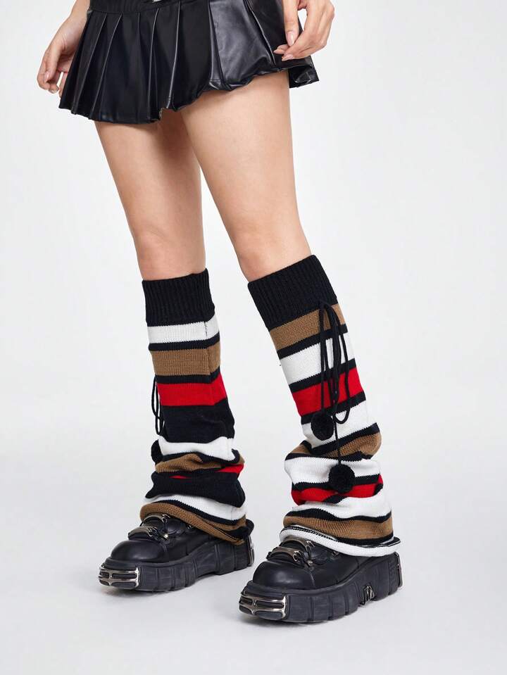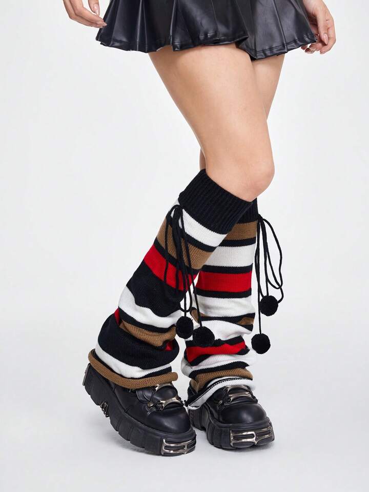 Anime 1 par de calentadores de pierna de 60cm de largo, con diseño de parches multicolor y pompones, adecuados para todas las estaciones, para mujeres