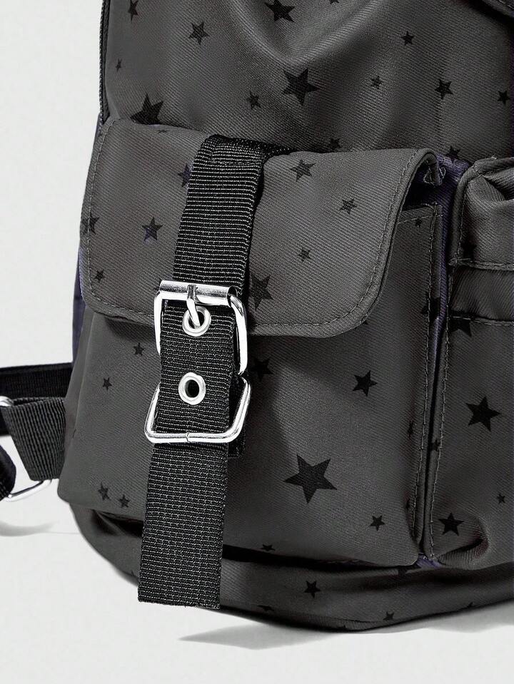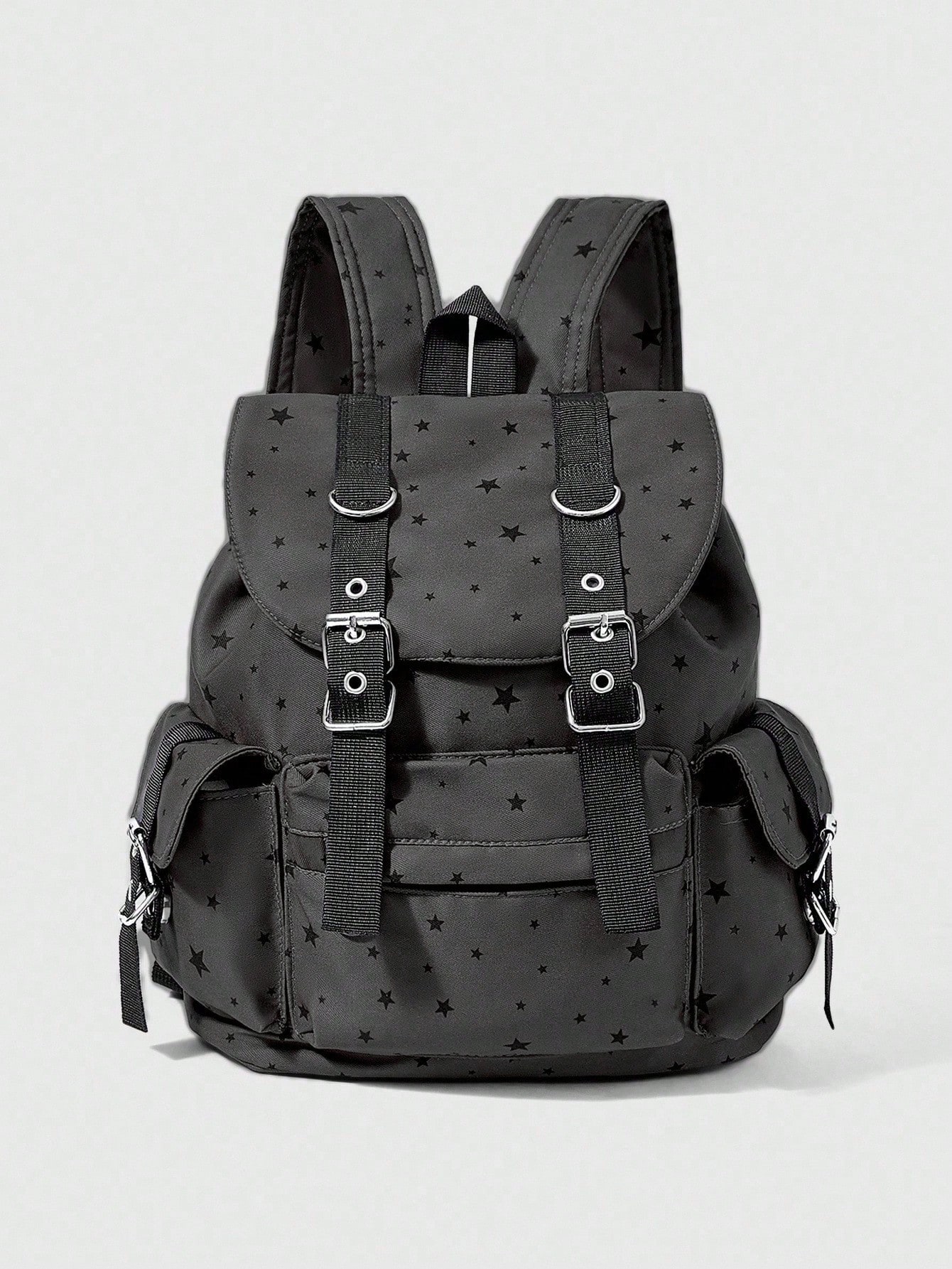 Anime 1 pieza Mochila de moda minimalista estilo retro y puntos de lunares con múltiples bolsillos y solapa, color negro, adecuada para la escuela y los viajes, puede contener un portátil