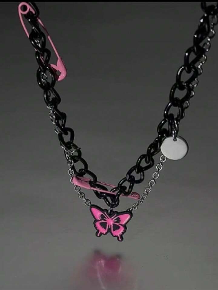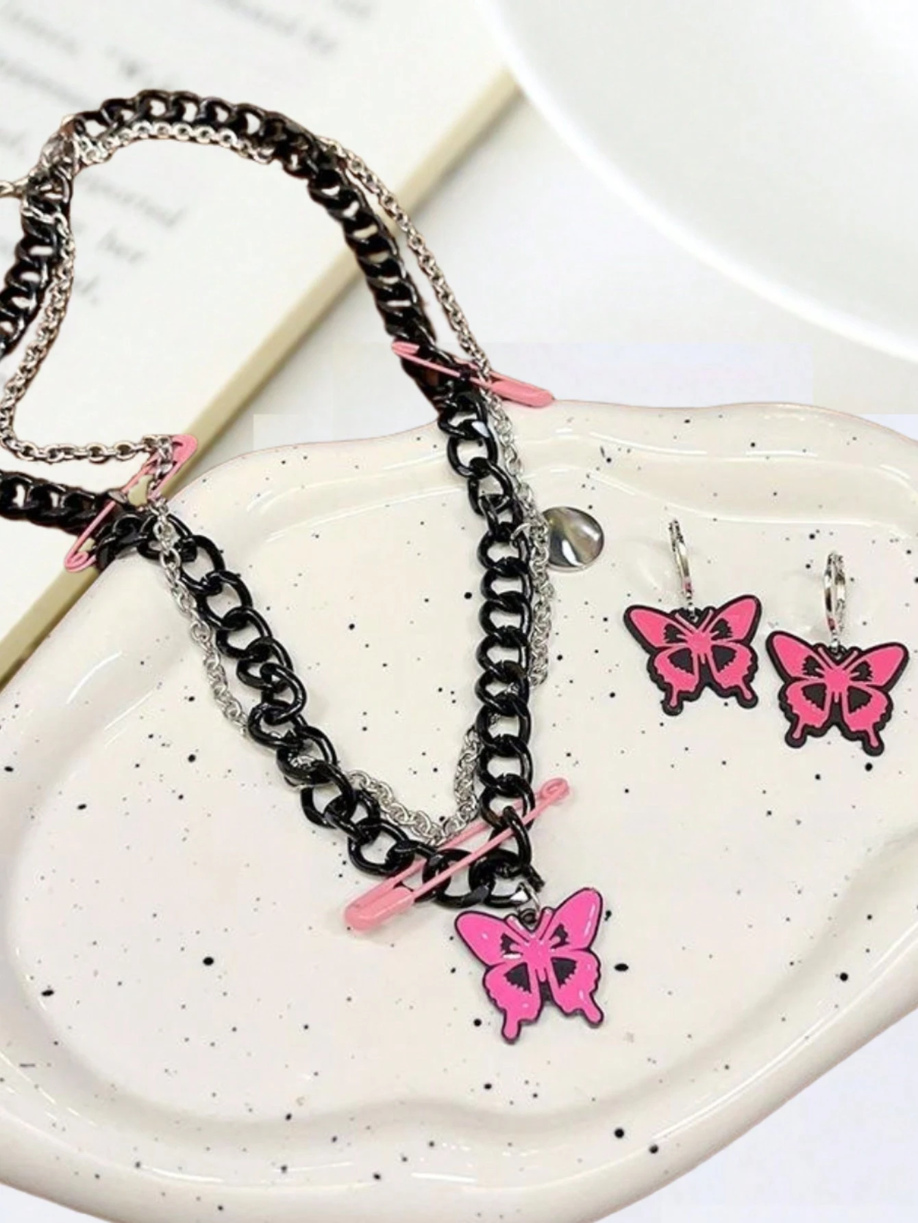 Anime 1 pieza dulce aleación de zinc con diseño de mariposa Collar & 1 par Pendientes para mujeres para decoración diaria