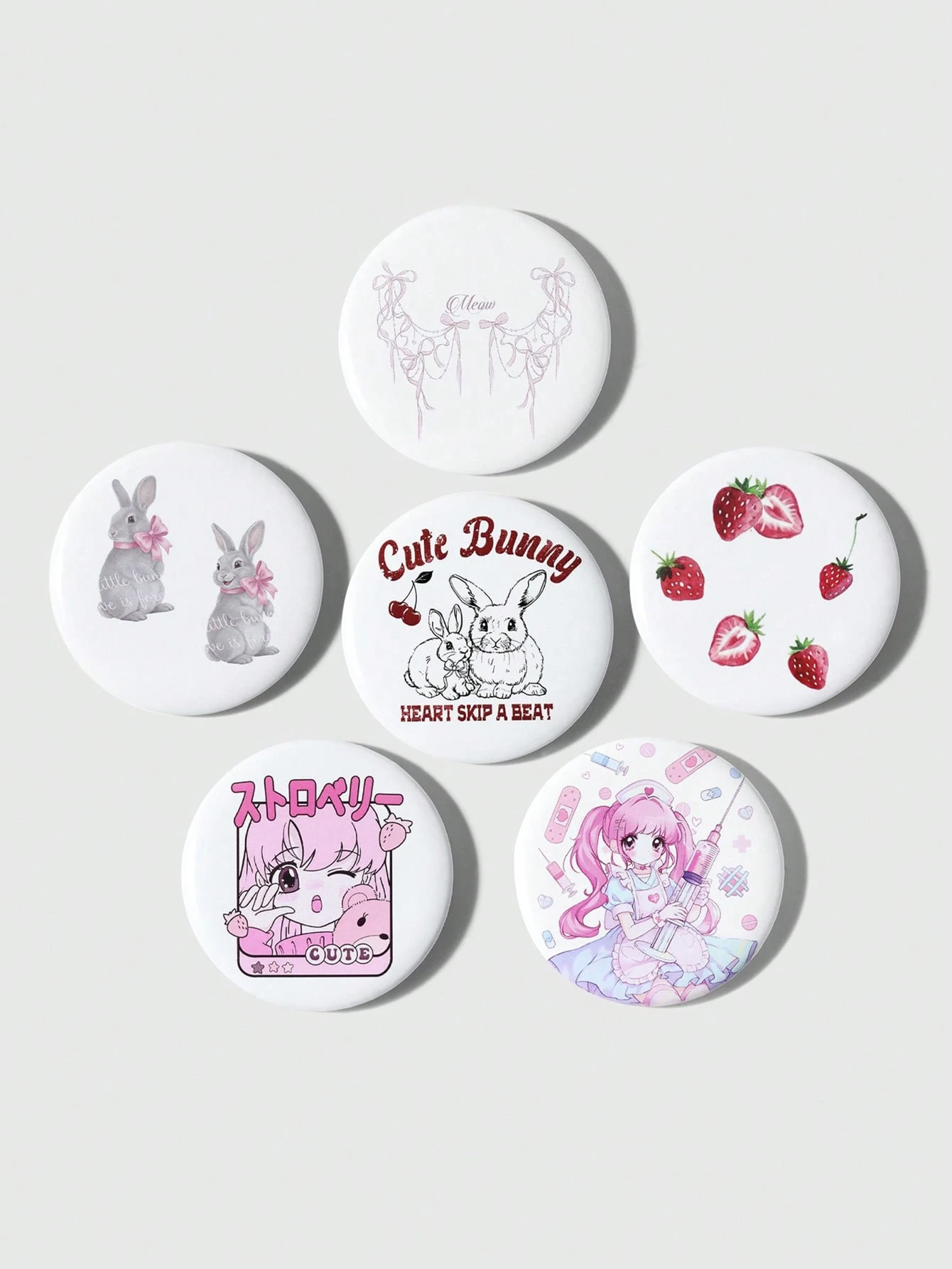 Anime Conjunto de 6 broches y colgantes de estilo de dibujos animados, con diseños de cereza, conejo, fresa, oso y enfermera, en colores rosa, blanco, rojo y gris. Ideal como regalo para hermanas, novias, amigas, parejas, niñas y mujeres para uso diario o en días festivos.