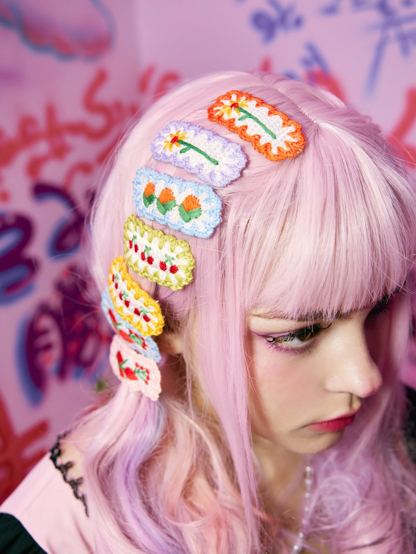 Anime 7 piezas Horquilla con bordado floral