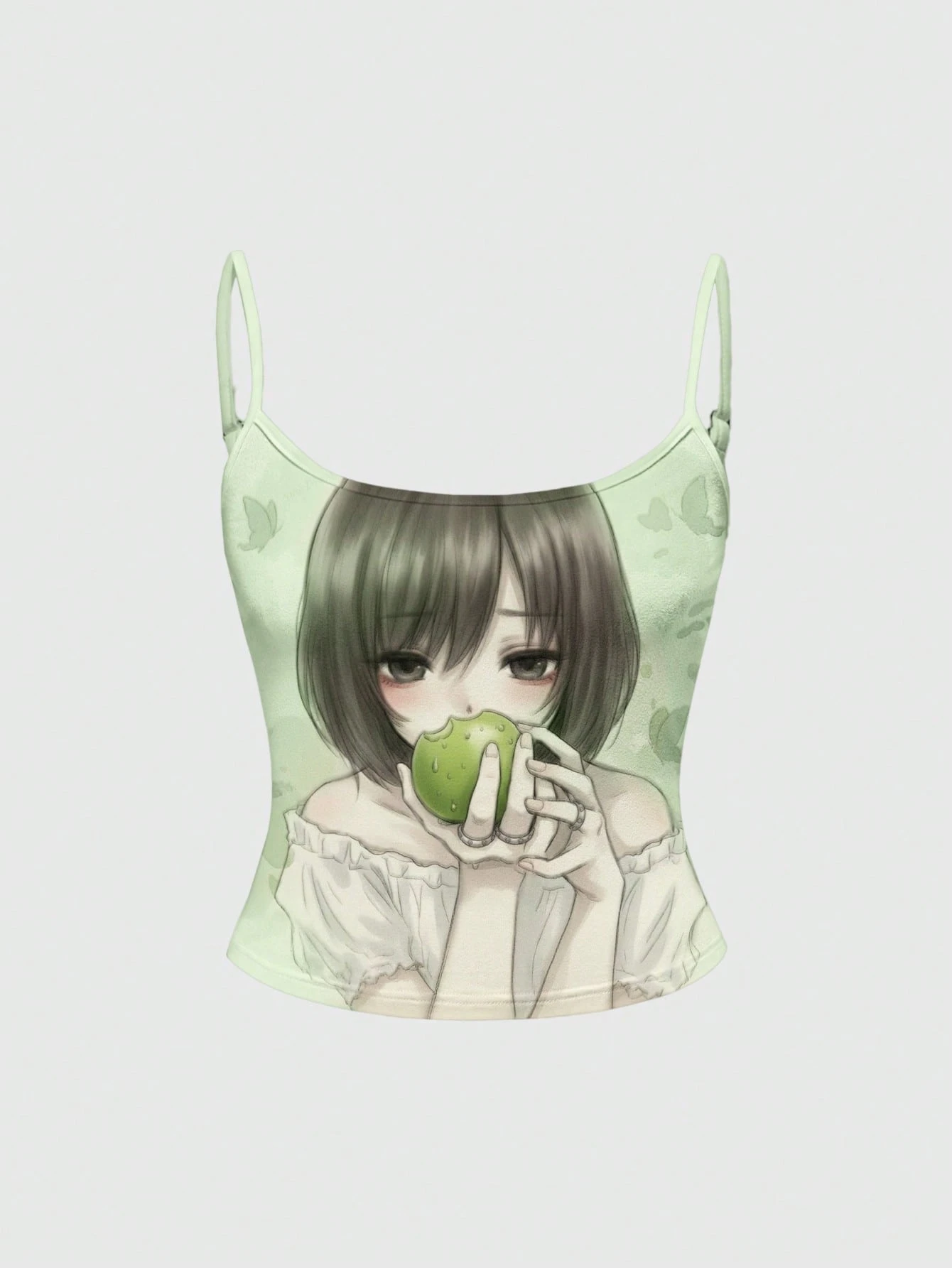 Anime Camiseta de tirantes blanca con estampado de mariposas, trébol, vintage Y2K, estética femenina y preparatoria para mujeres