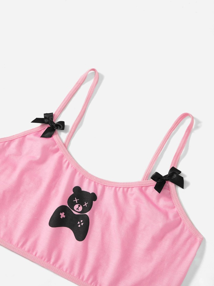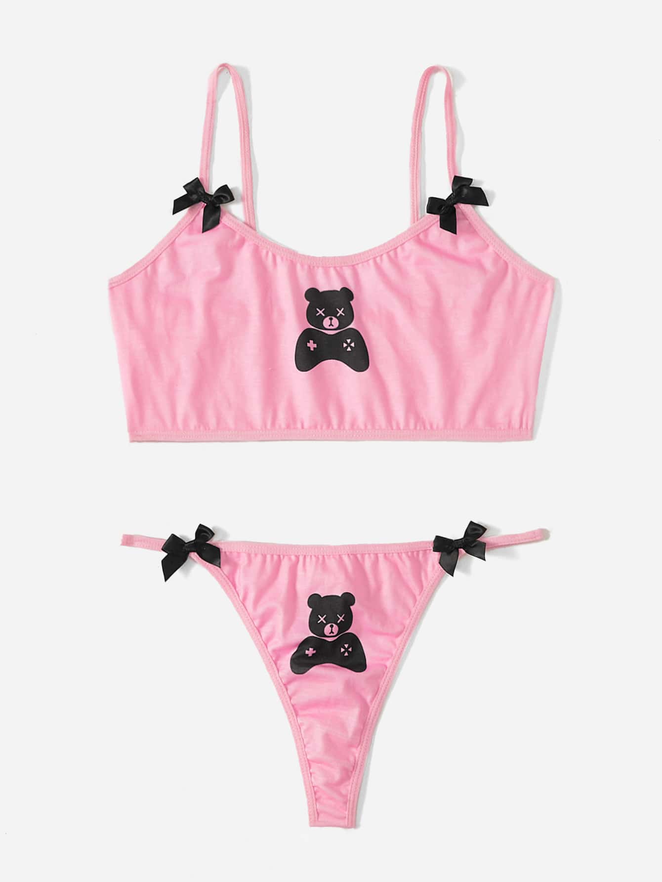 Anime Set de lencería con estampado de oso de dibujos animados con diseño de lazo