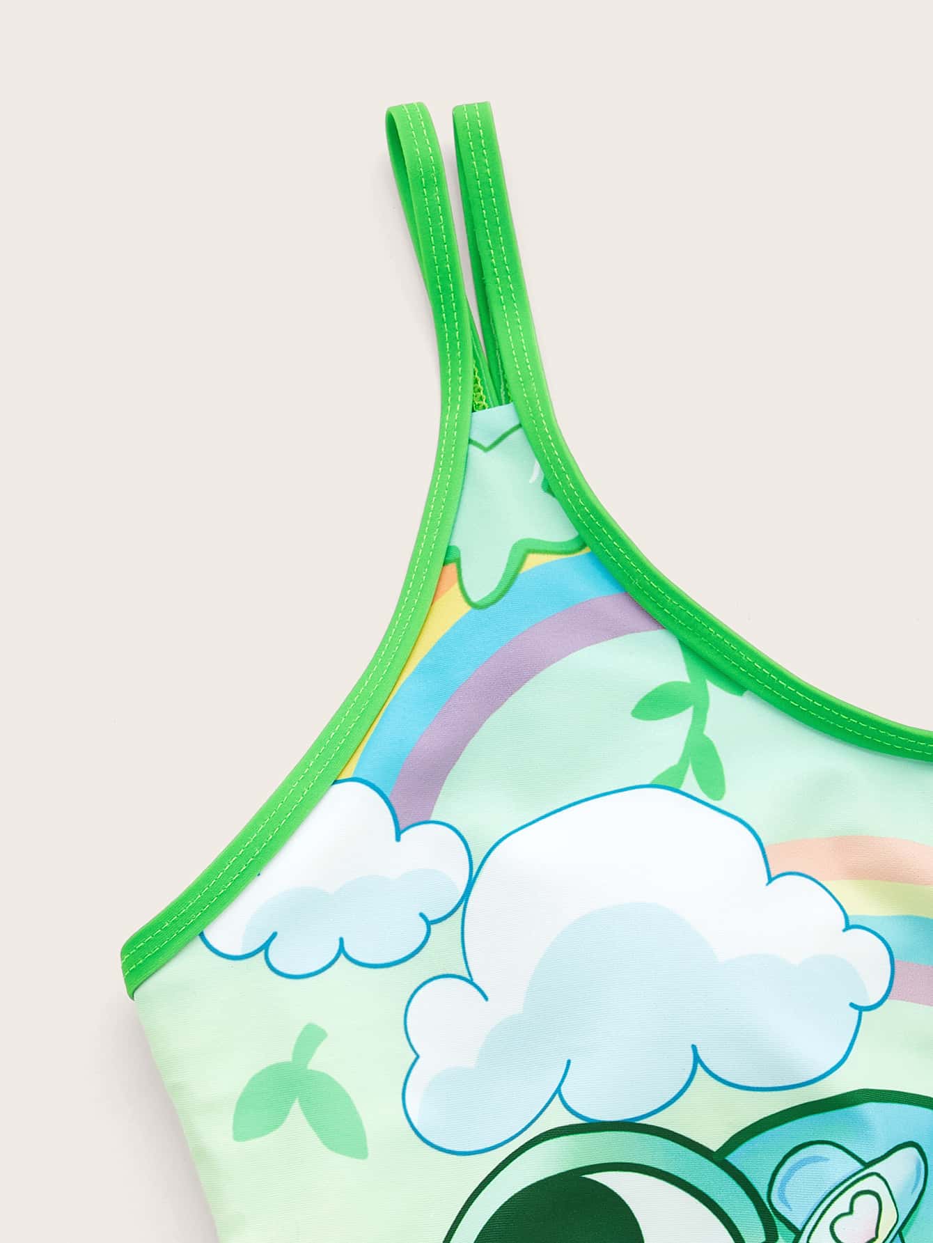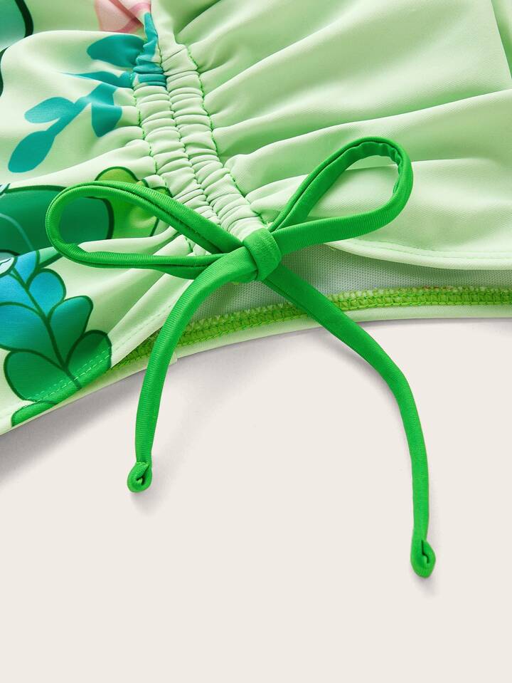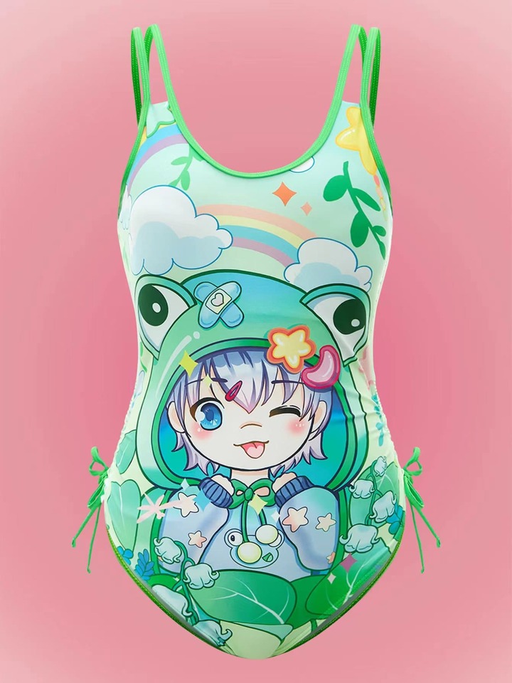 Anime Bañador una pieza con estampado de dibujos animados con cordón fruncido