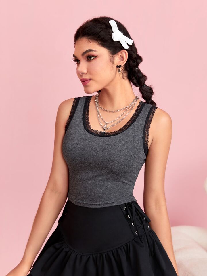 Anime Top tank con encaje en contraste