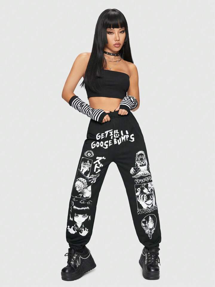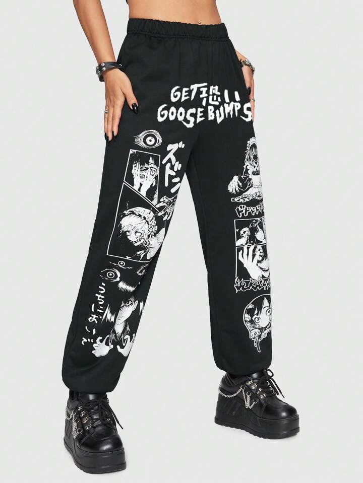 Anime Pantalones deportivos con estampado de figura y letra