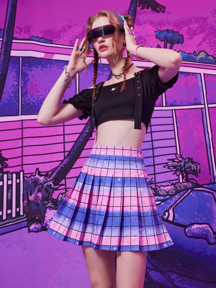 Anime Falda galaxia de cuadros de color combinado