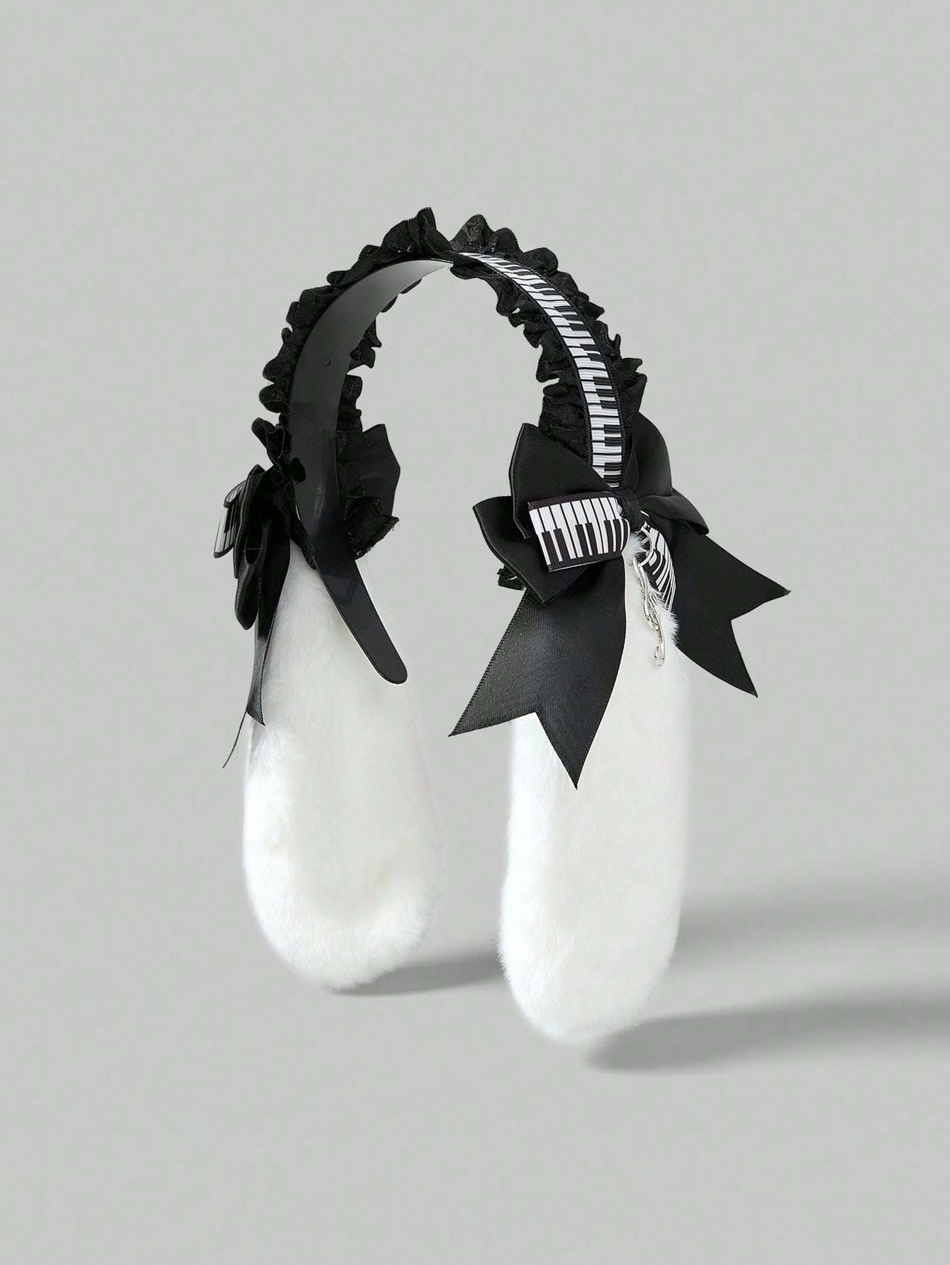 Anime Diadema versátil y linda con diseños de tecla de piano, nota musical, lazo y orejas de conejo, en estilo gótico, para niñas