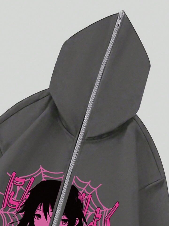 Anime Hombres Capucha con cremallera con estampado de figura y letra