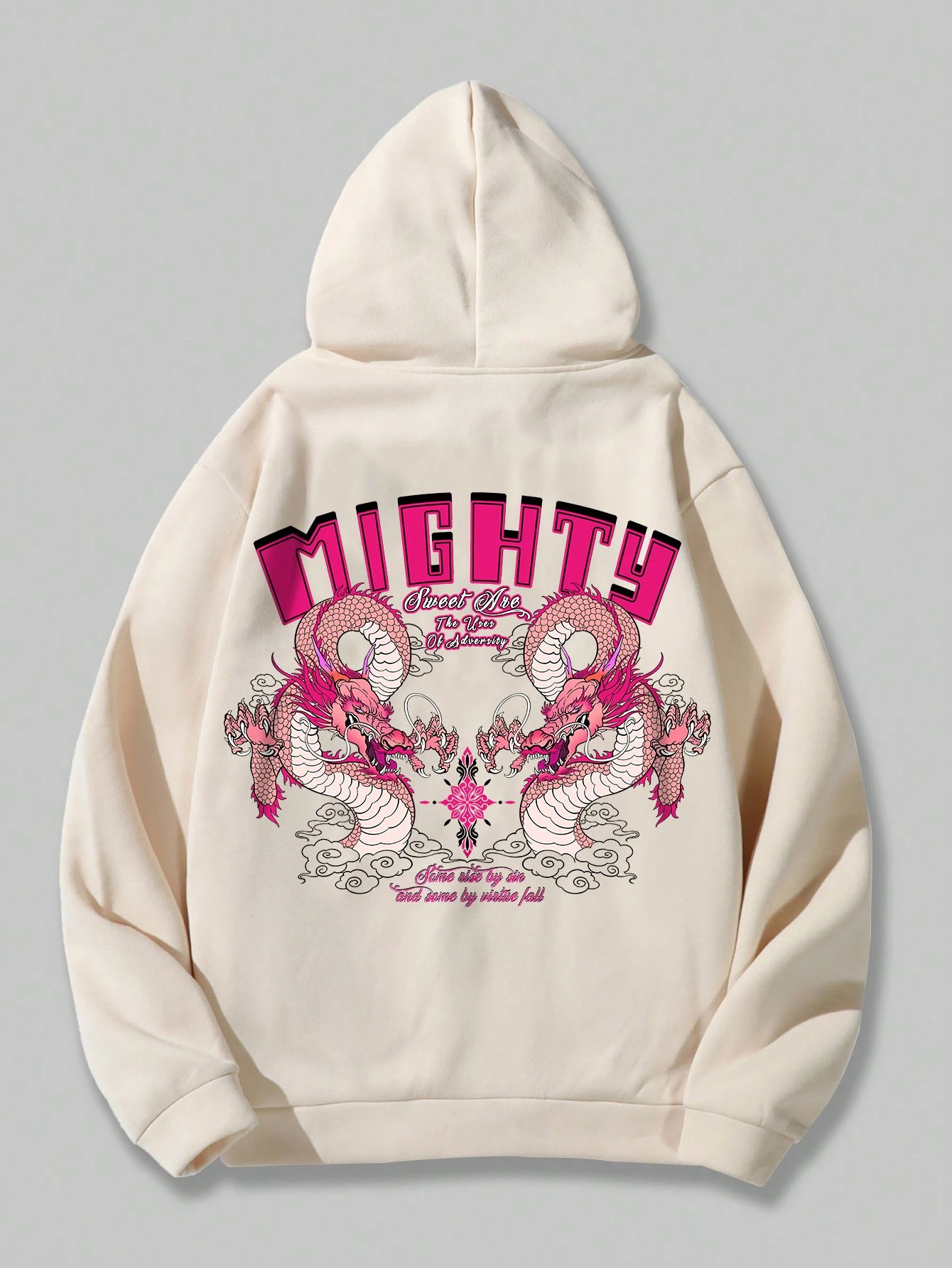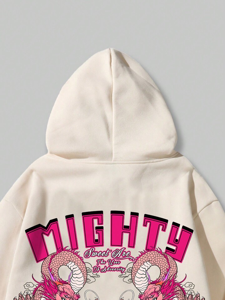 Anime Hombres Capucha térmica con letra & con estampado de dragón chino con cordón