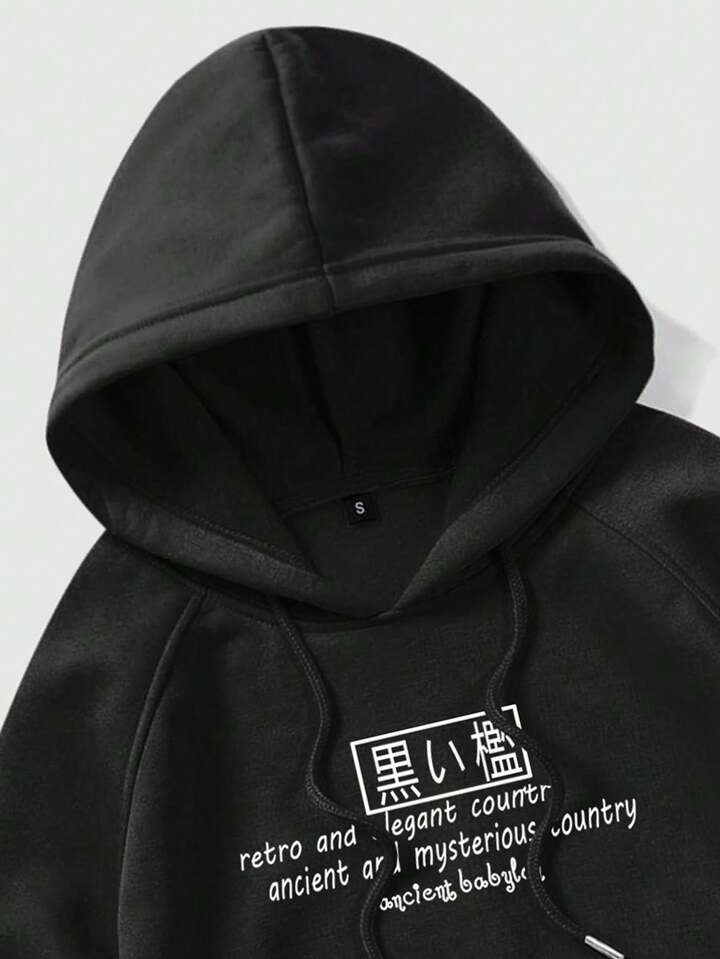 Anime Sudadera Negra Con Capucha Y Manga Larga Con Patrón De Dragón Para Hombre